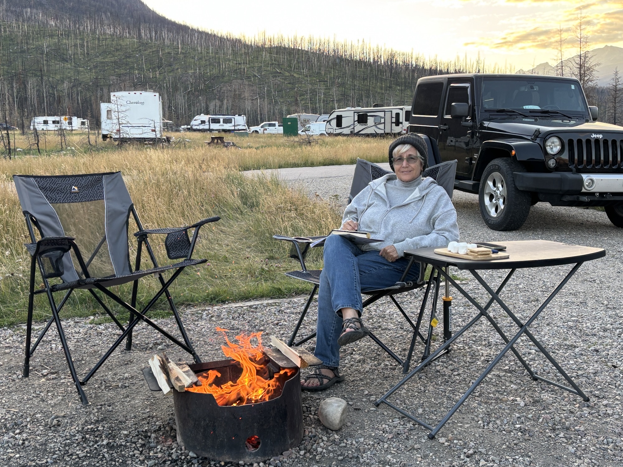 And an interesting side story is that most parks require you to purchase firewood from them to prevent you bringing in wood contaminated with insects. And to make some extra money. Here, they had at least two huge stacks of firewood, and they said, “go help yourself! Take all you want!” We took advantage of the offer and made some nice smores! Thank you!
