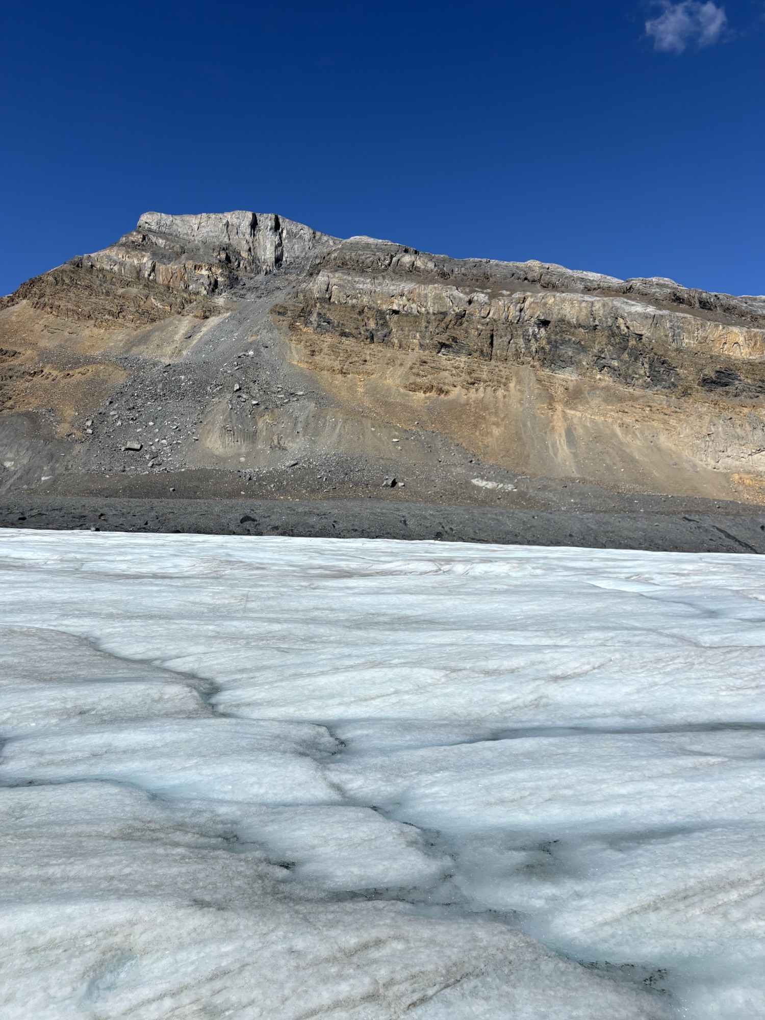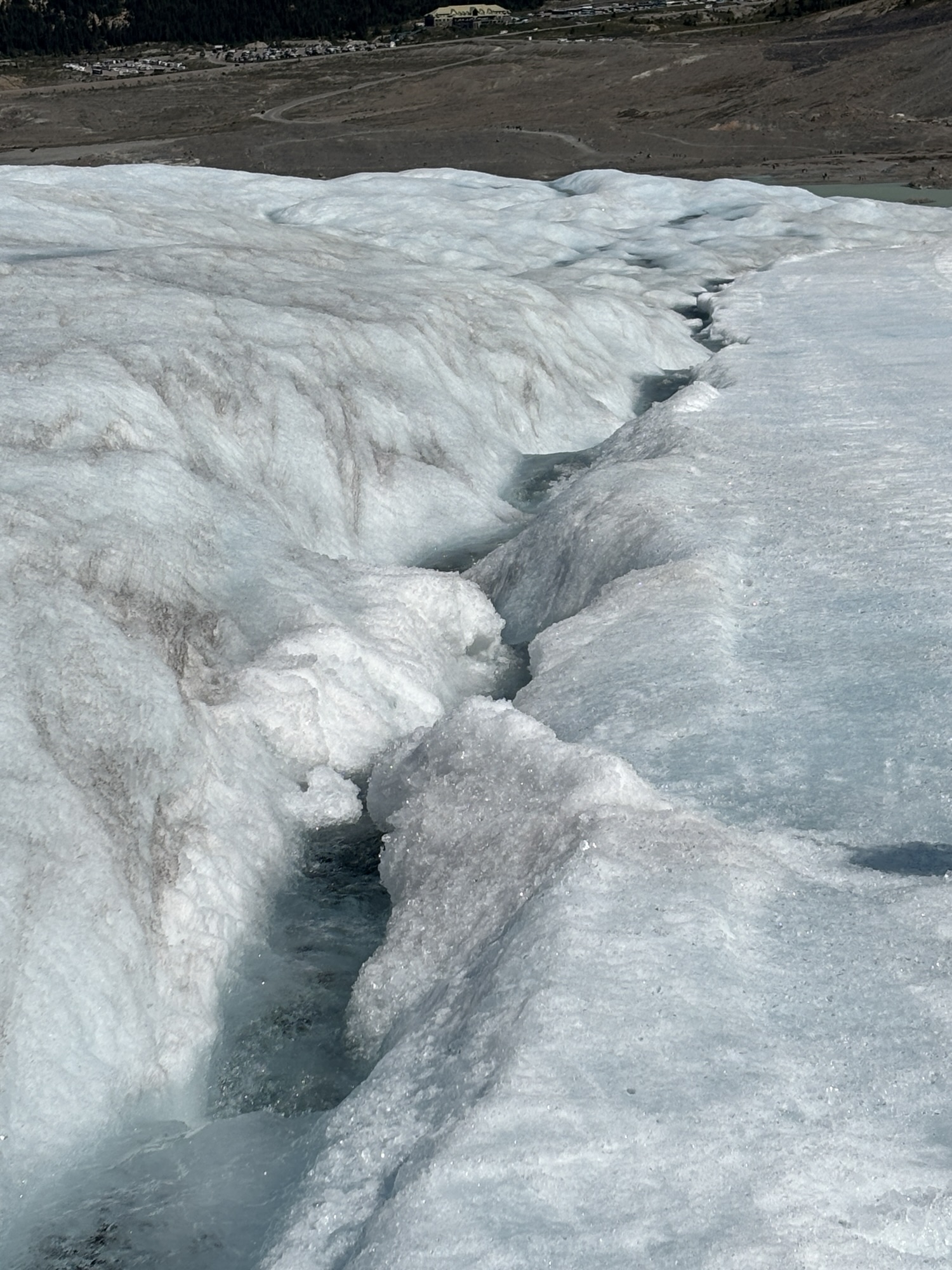 This requires taking a bus to another lot and then transferring to an all-terrain Ice Explorer vehicle to the Athabasca Glacier. While this glacier is the easiest for visitor access, the Columbia Icefield is made up of 6 glaciers and is the largest icefield in the North American Rockies at about 125 sq mi in area and 328 to 1,198 ft in depth. You can’t see the vastness of the field because of the mountain peaks!