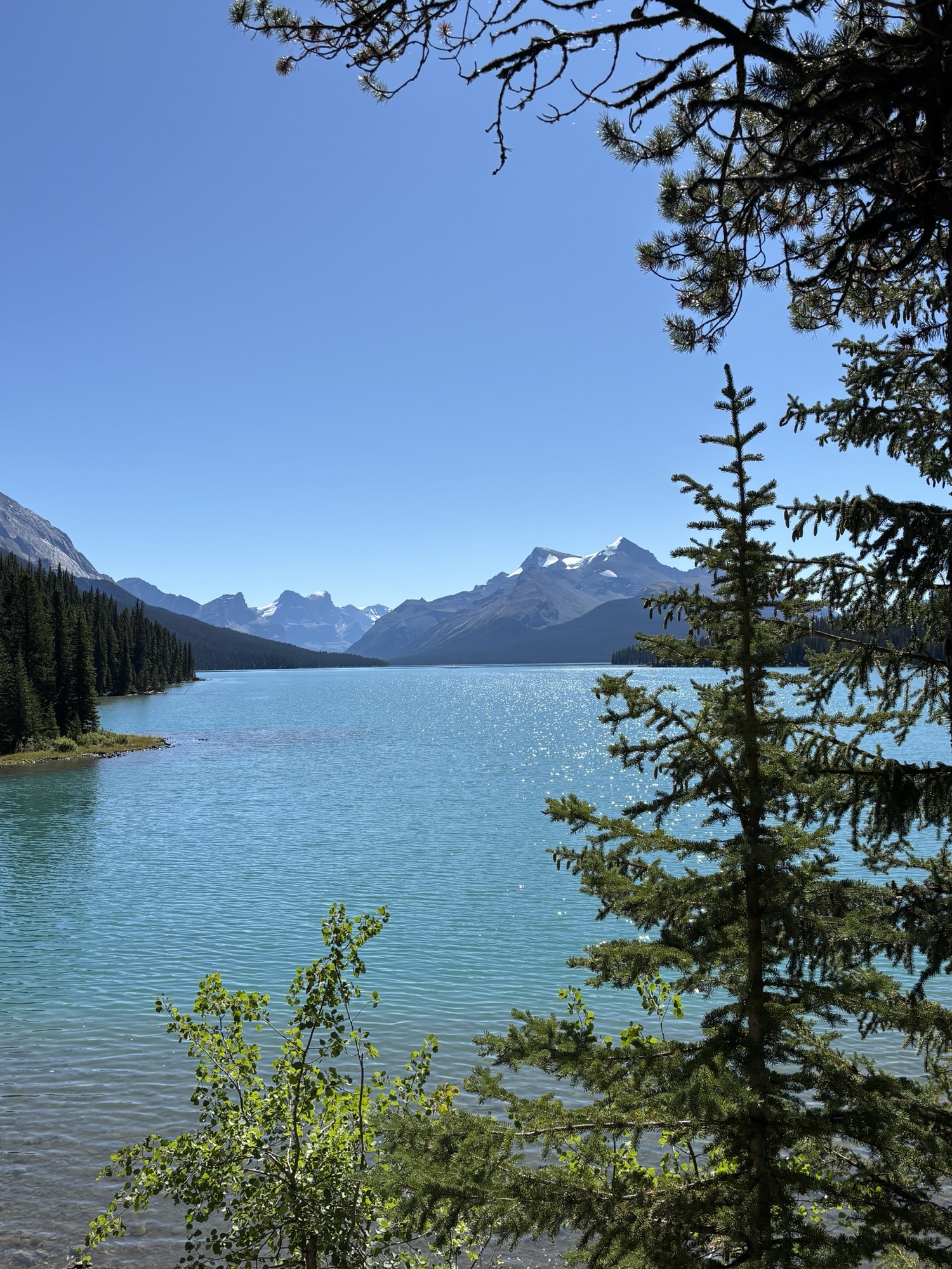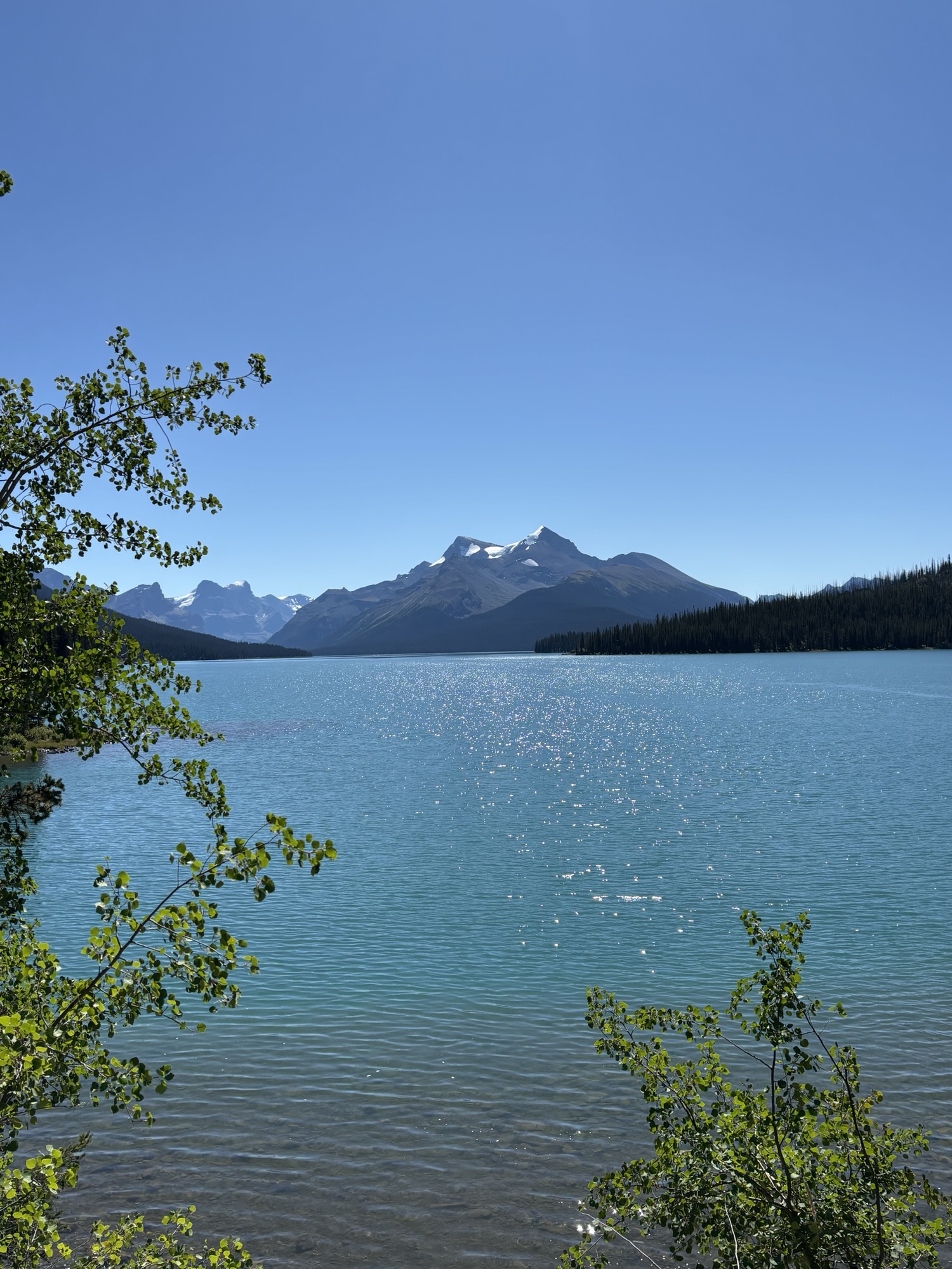 The next day we had tickets for the boat tour on Maligne Lake which is about a 20-mile drive out of town. The first few miles were through some of the fire area, so the view was again very sad. The photos we took just cannot show the extent of the damage.