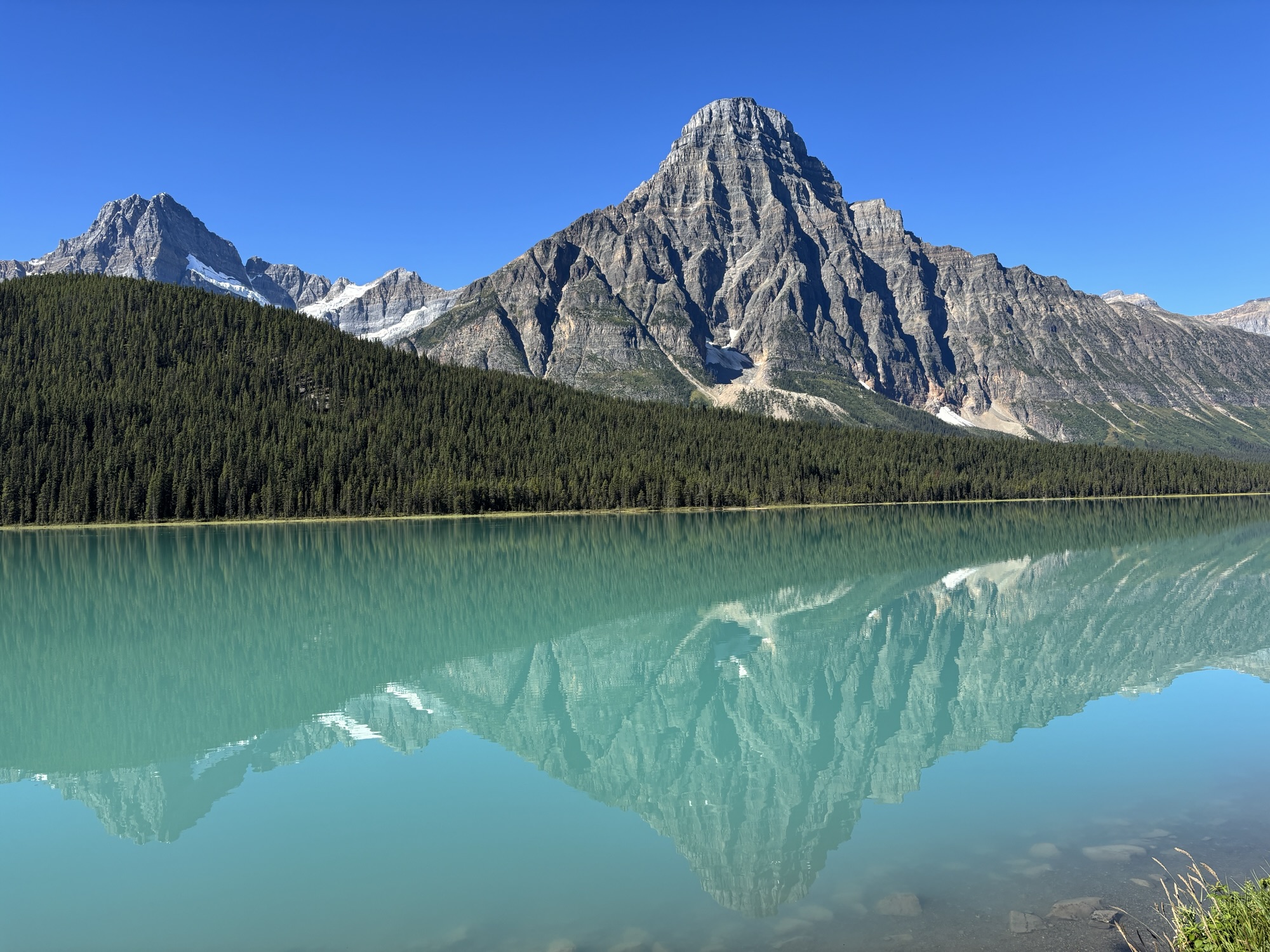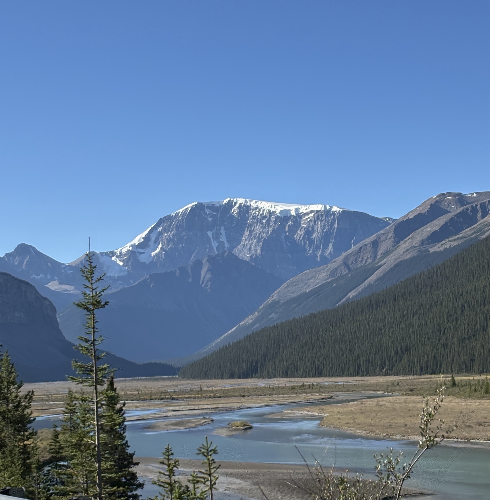 We drove south on the Icefields Parkway in reverse from our drive up to Jasper. We didn’t need to stop for any specific reason but did pull out for some more views and photos. It was interesting that the views were from the opposite side of the mountains.