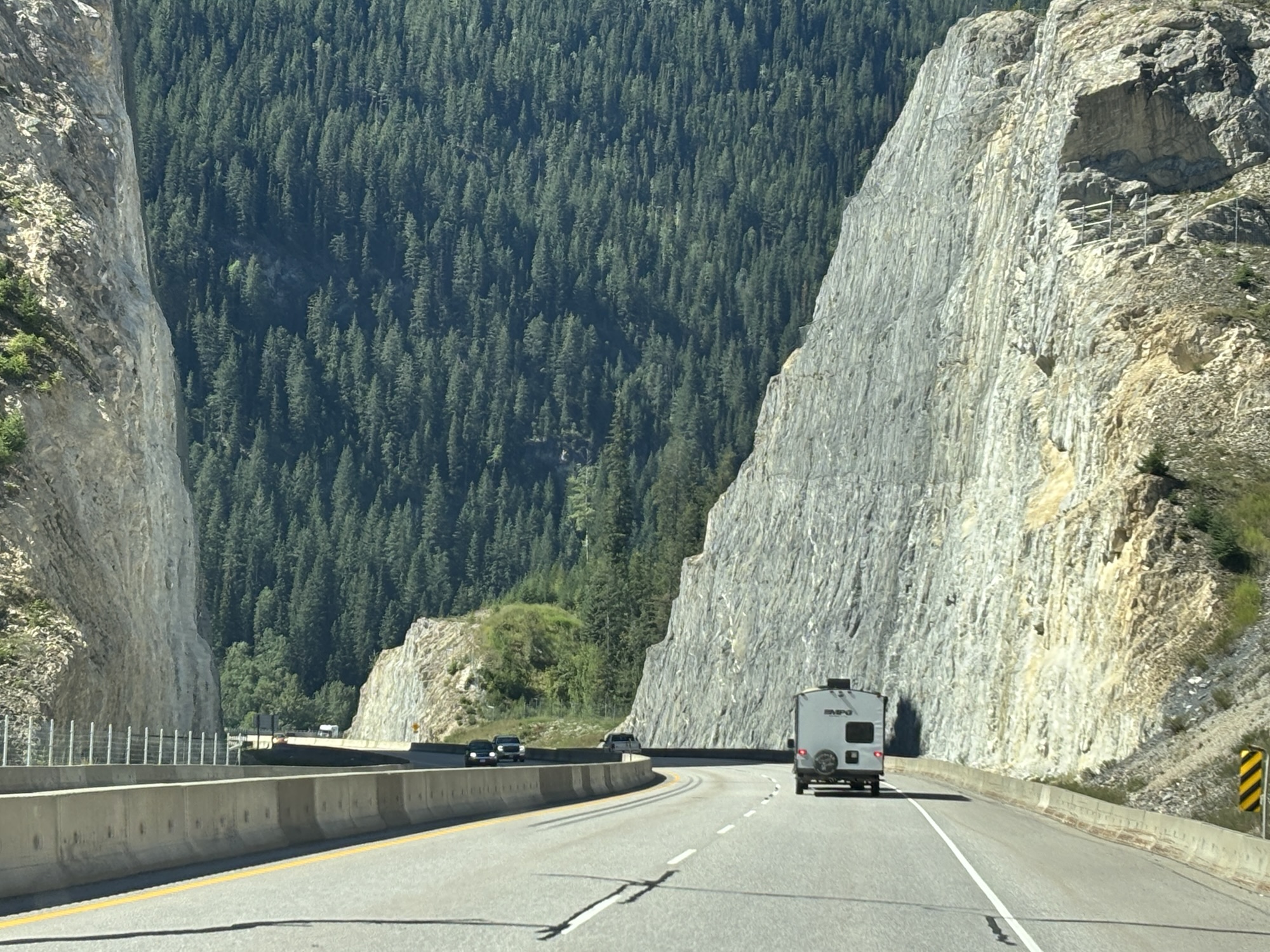 This was originally just planned as a halfway stop on the way, but it turned out to be more than expected. After another 50 miles, we climbed up and crossed Rogers Pass through the Selkirk Mountains in the “BC” Glaciers National Park. The pass wasn’t that steep or intimidating and we didn’t realize the significance until we Googled it. The pass has been a tourist venue since the late 1800’s and a significant pass for the Canadian Pacific Railroad. We didn’t stop but did enjoy the view.