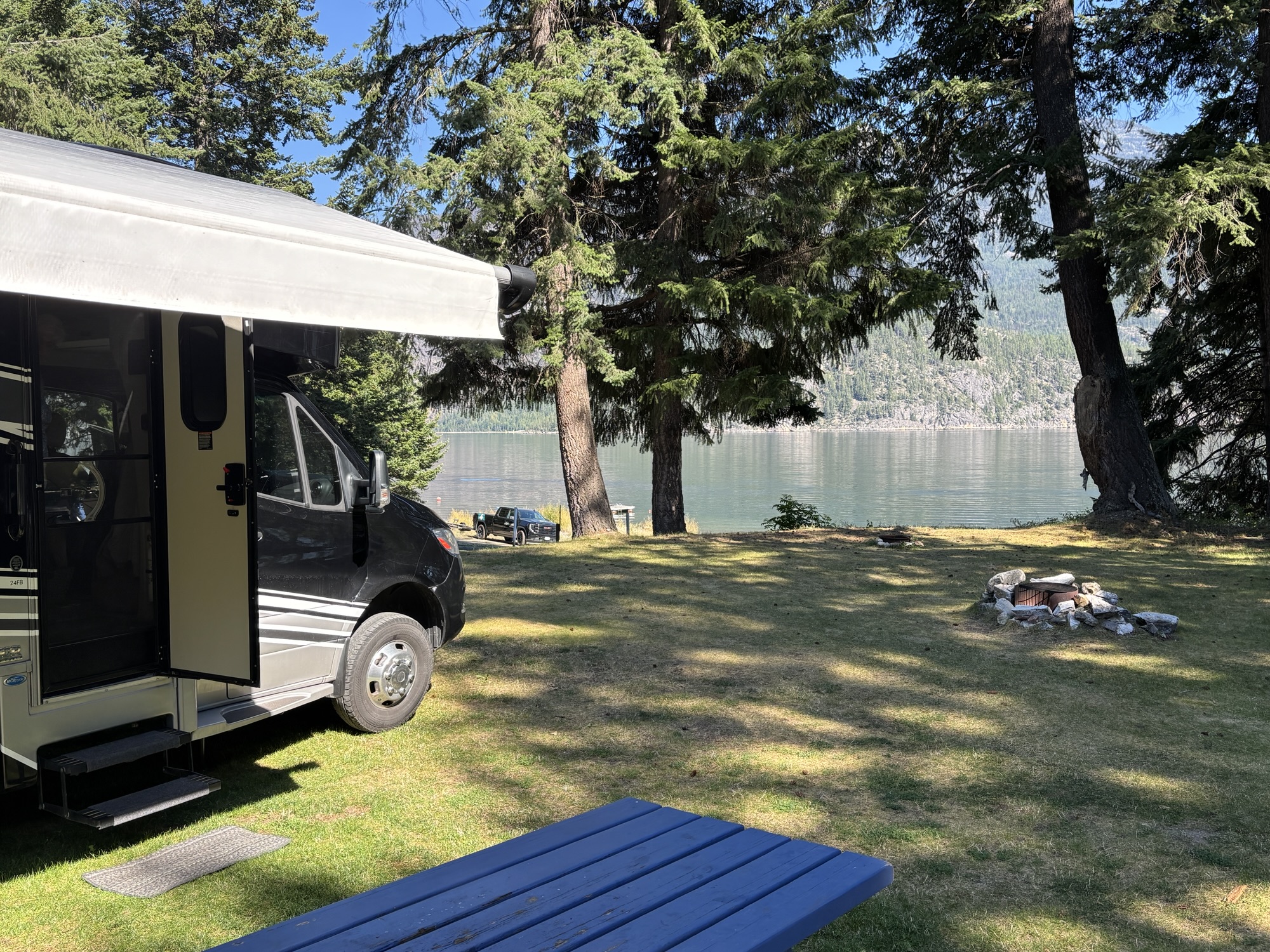 The next stop was Kaslo. We stayed at a campground about 5 miles away from their property at their recommendation and got a spot right by the office looking out over the lake. Nice! And since it was our 41st Anniversary, we had reservations for dinner in Ainsworth at the Ktunaxa Grill, also at the recommendation of Deb.