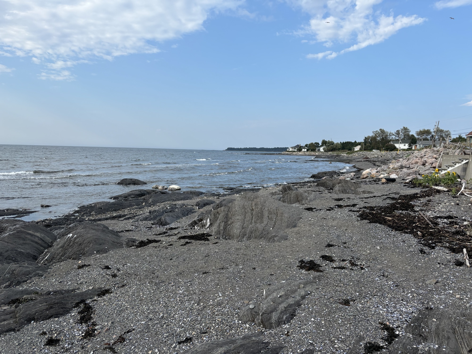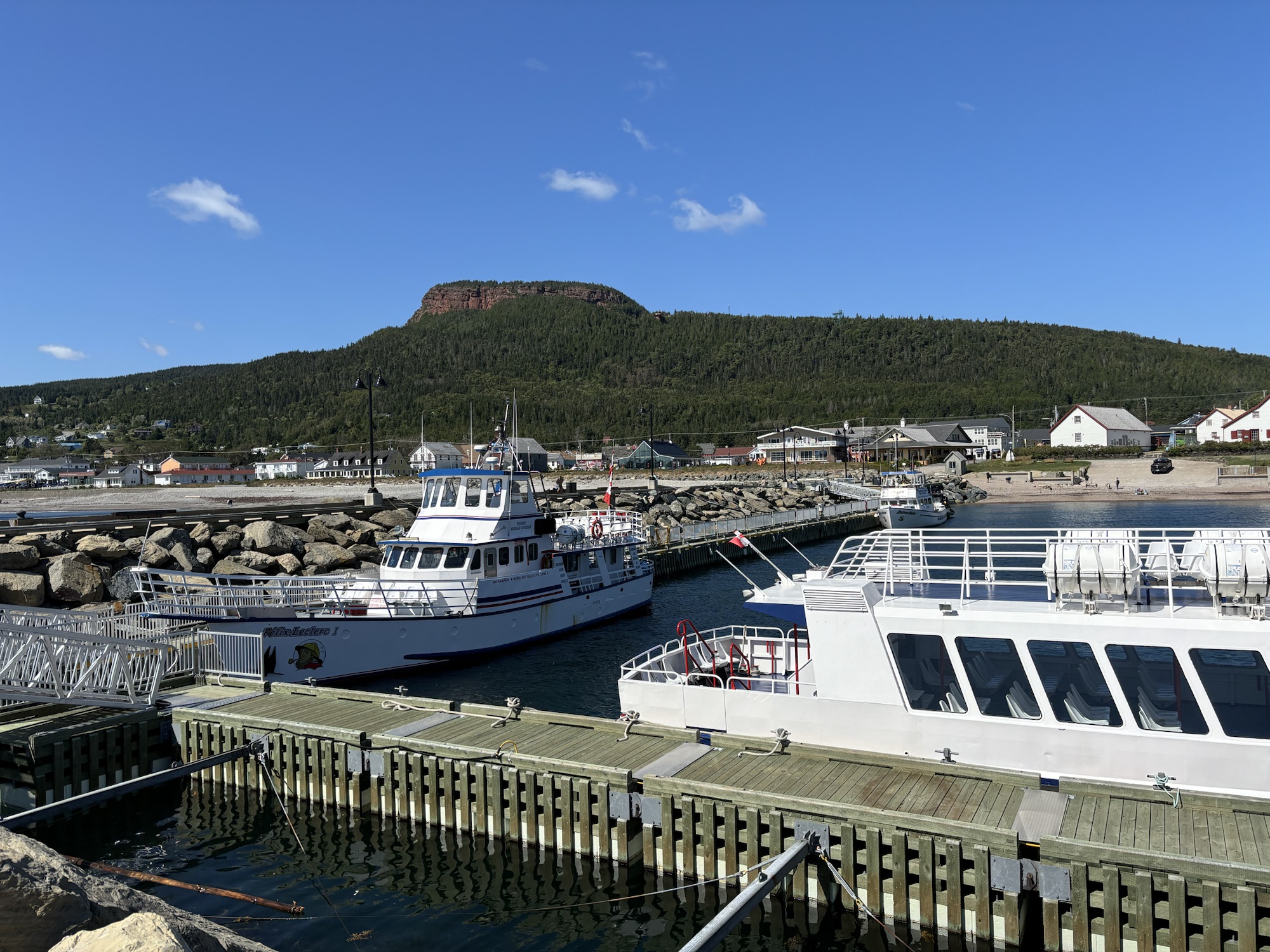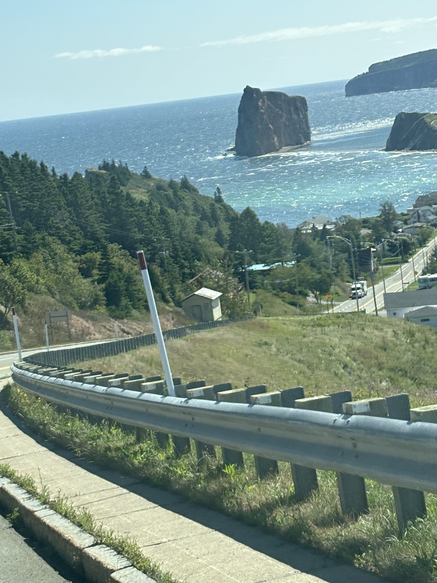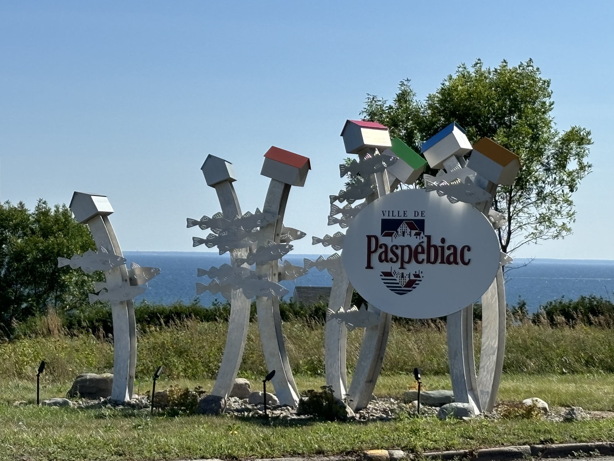 We were planning to drive the entire coast of the Gaspe Peninsula and had picked a small town and RV Park to start. The town was Saint Alexandre-du-Kamouraska (doesn’t really sound French, but..) and it was smaller than its name! The larger town next door is Riviere-du-Loup. The RV Park was nice. We had a small problem with the power breaker but all was fixed quickly and we went to get some Canadian dollars, go for a walk on the water front and restock on some groceries. Good start.