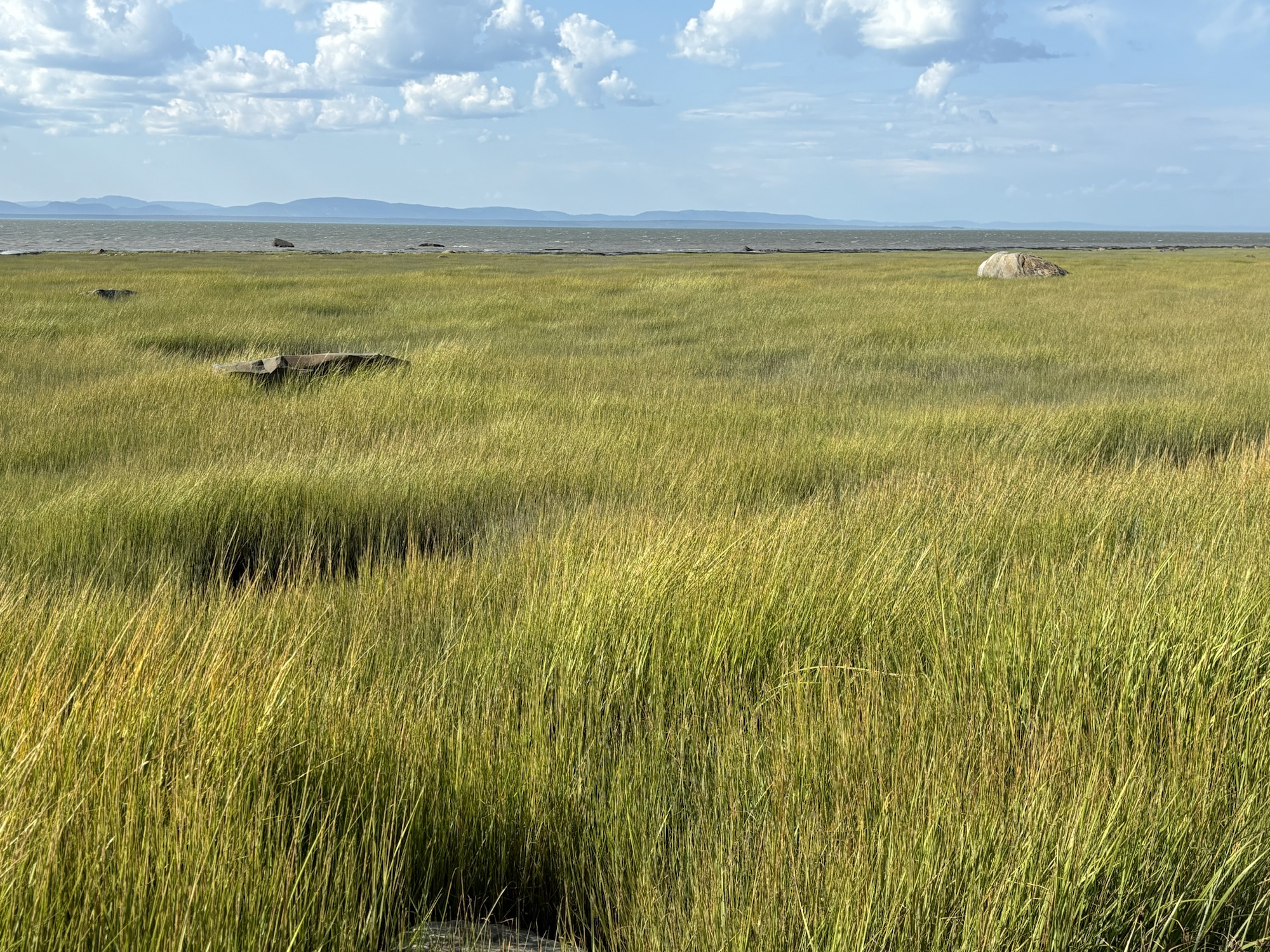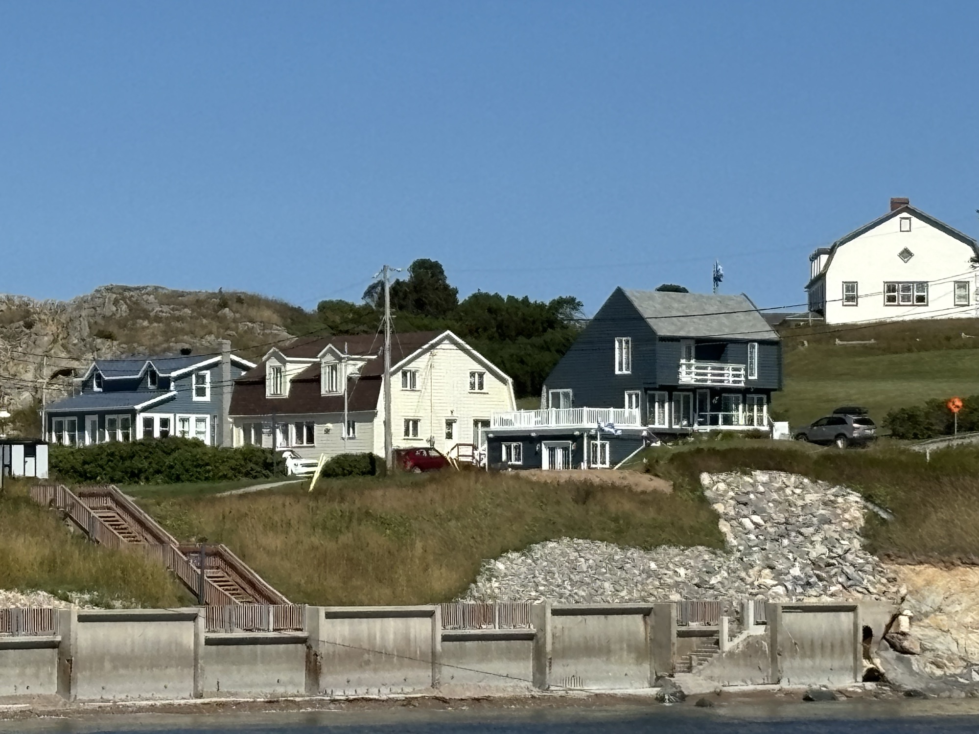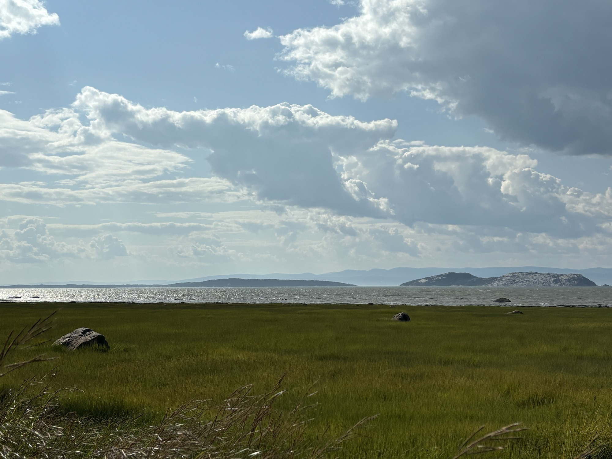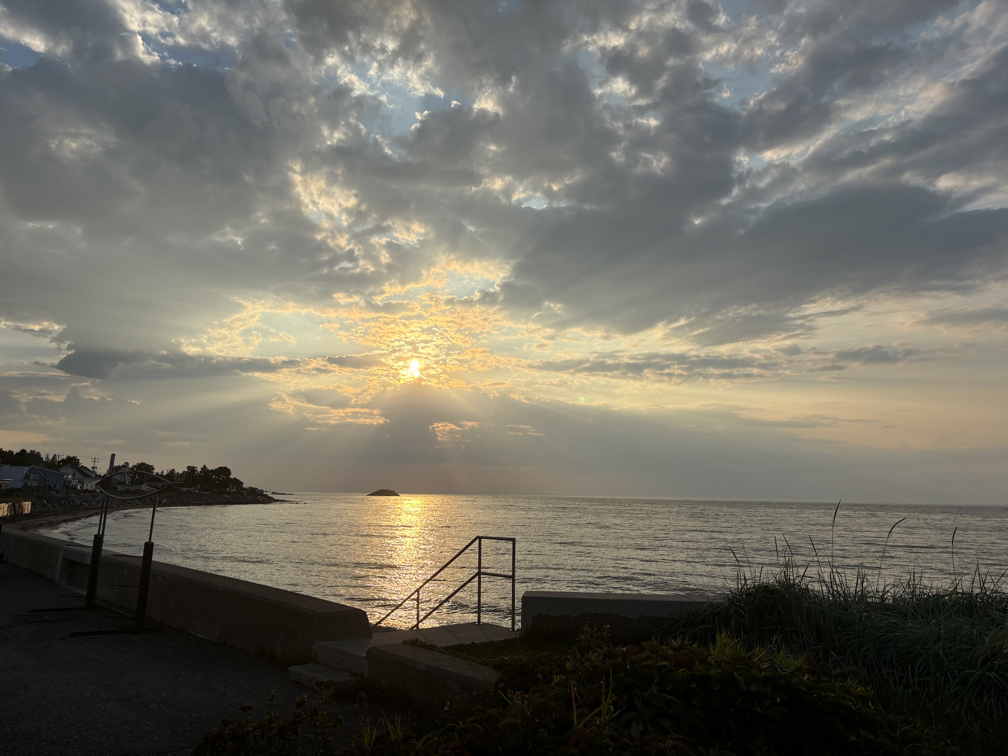 We were planning to drive the entire coast of the Gaspe Peninsula and had picked a small town and RV Park to start. The town was Saint Alexandre-du-Kamouraska (doesn’t really sound French, but..) and it was smaller than its name! The larger town next door is Riviere-du-Loup. The RV Park was nice. We had a small problem with the power breaker but all was fixed quickly and we went to get some Canadian dollars, go for a walk on the water front and restock on some groceries. Good start.