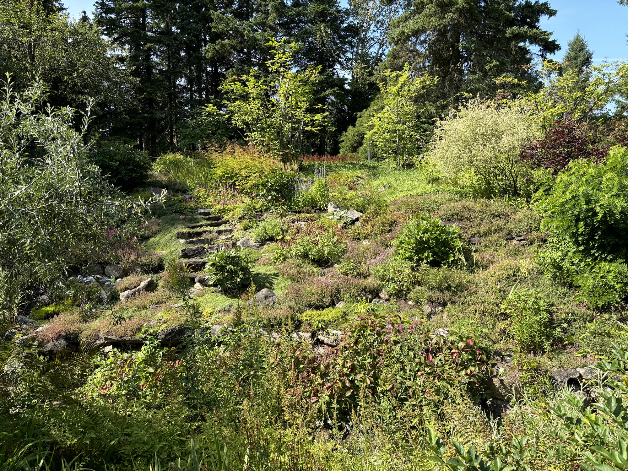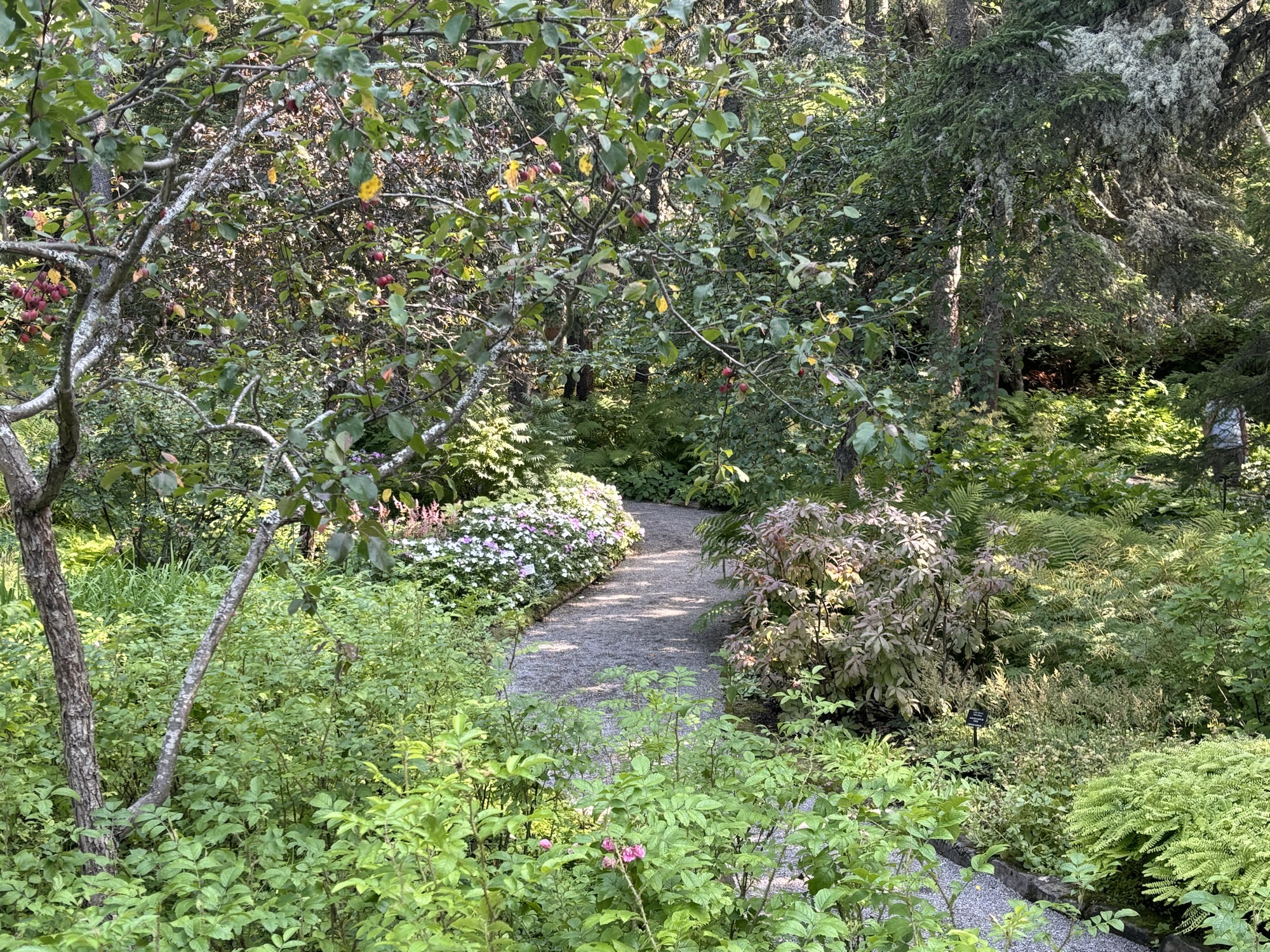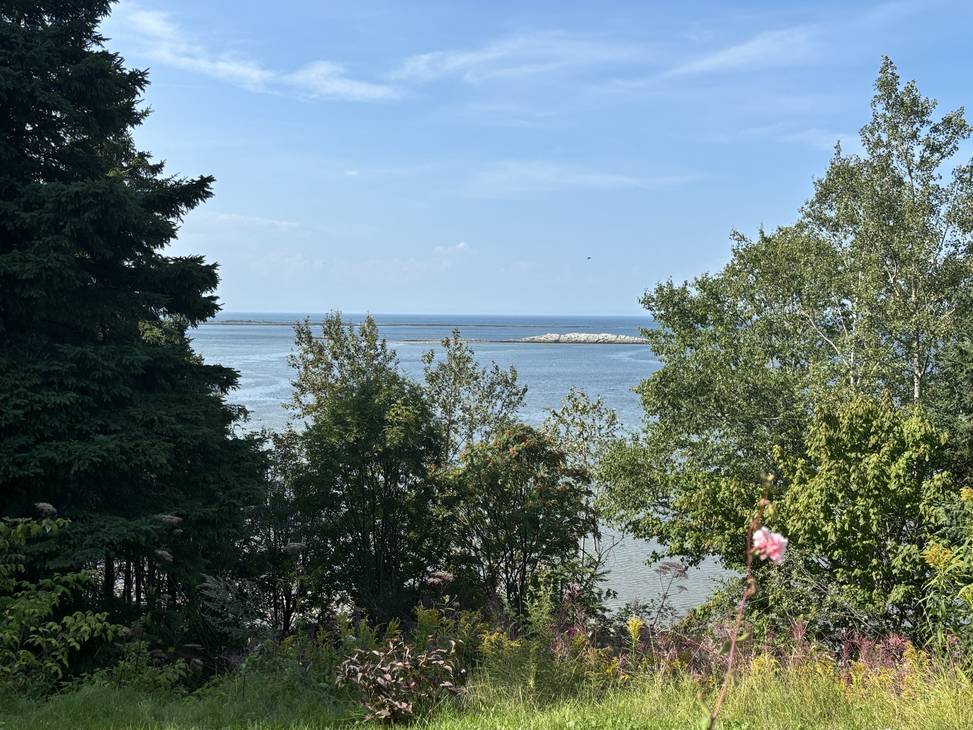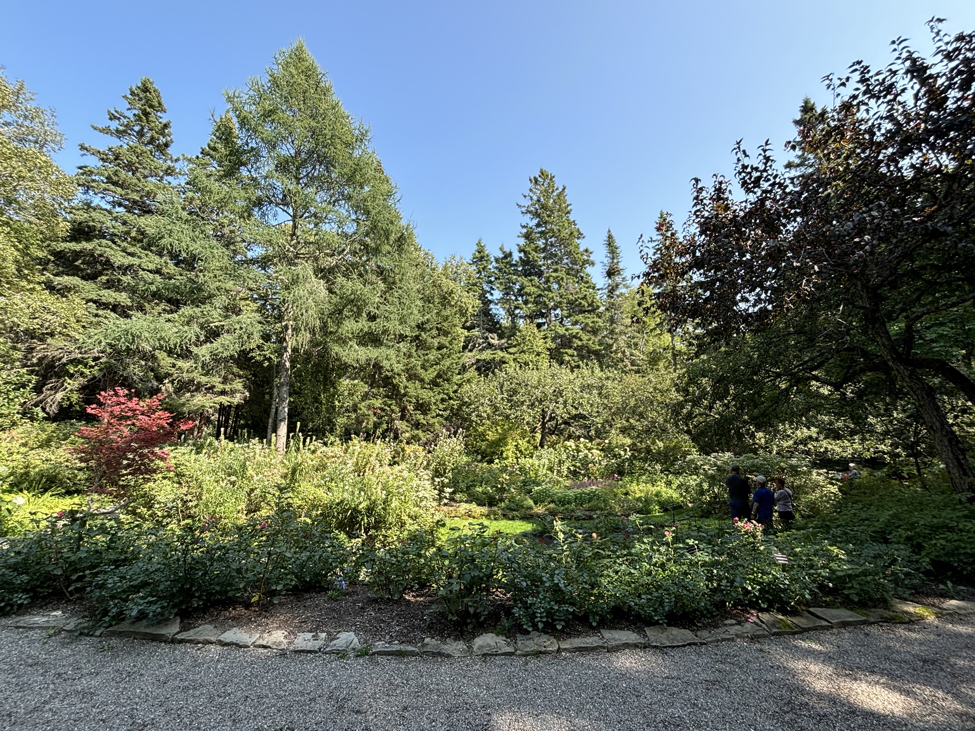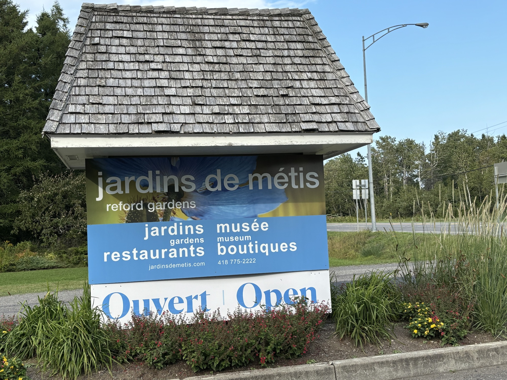 Second day, we drove east along the shoreline on Hwy 132 (which was to become a good friend as it was the road all the way around the cape). The day had turned out to be one of the best in a while and we drove the 100 miles easily if not a little bumpy in places. Our next stop was in Metis sur Mer and the recommended Redford Gardens. It was our 40th Anniversary so we wanted to have a special day.