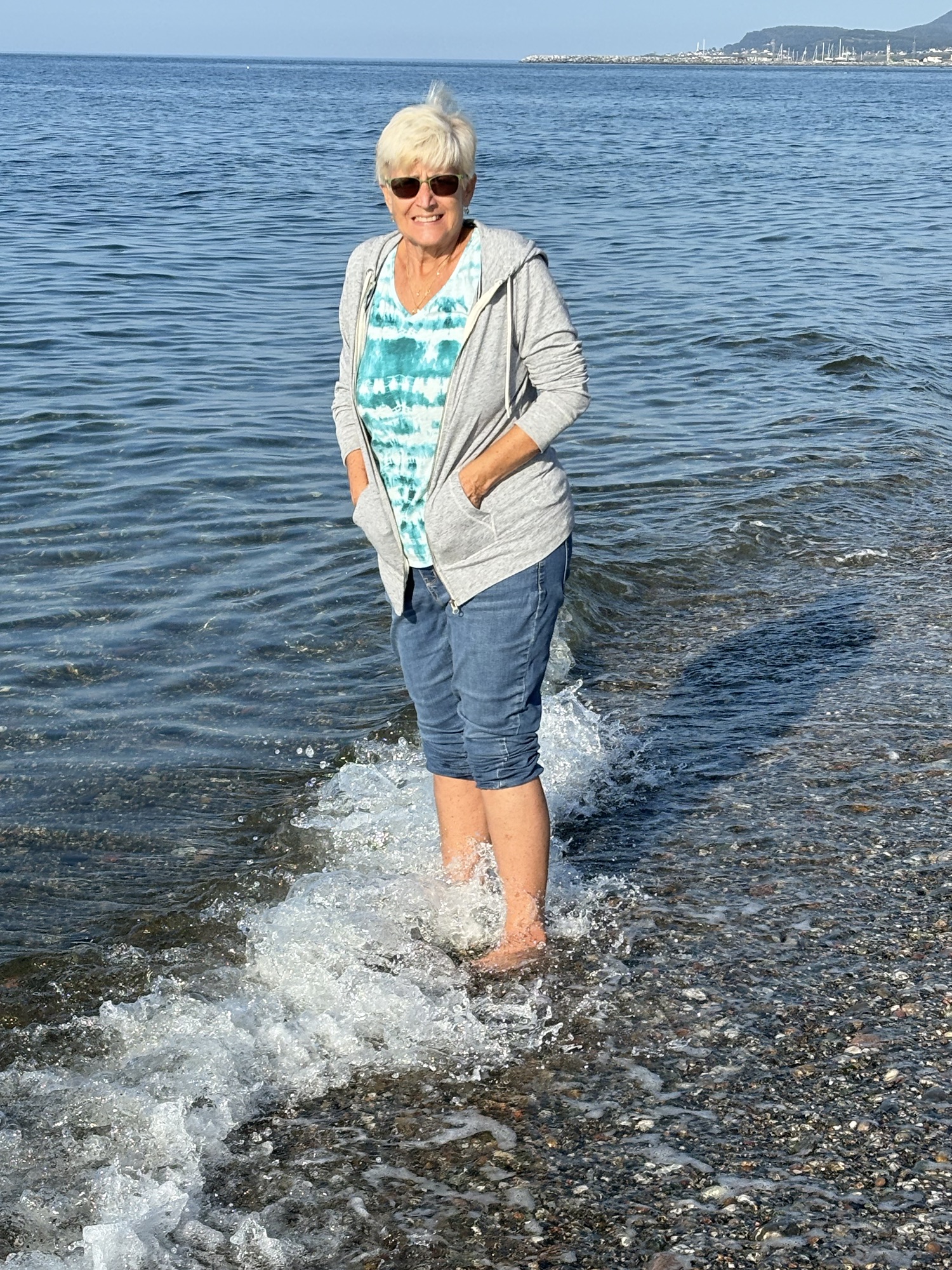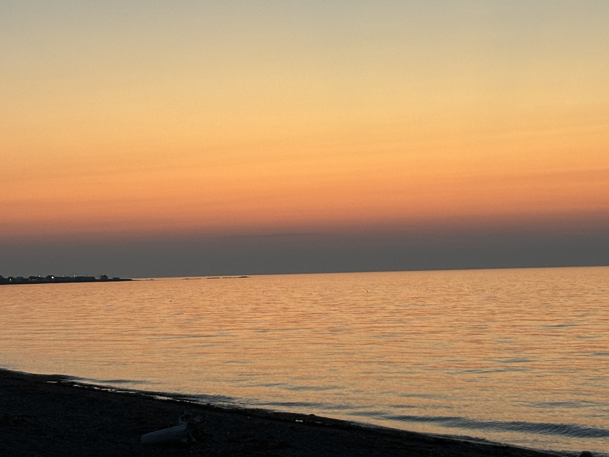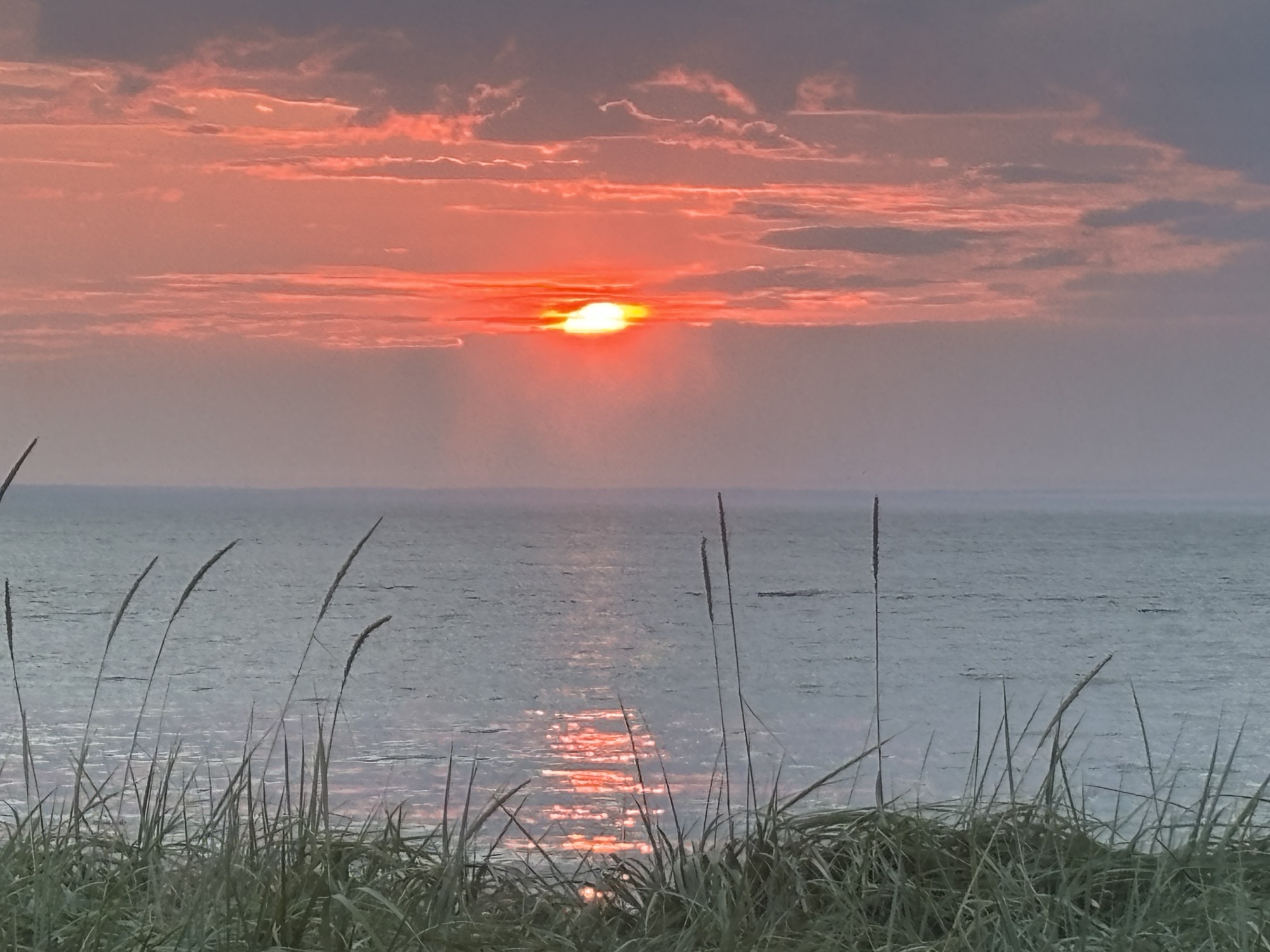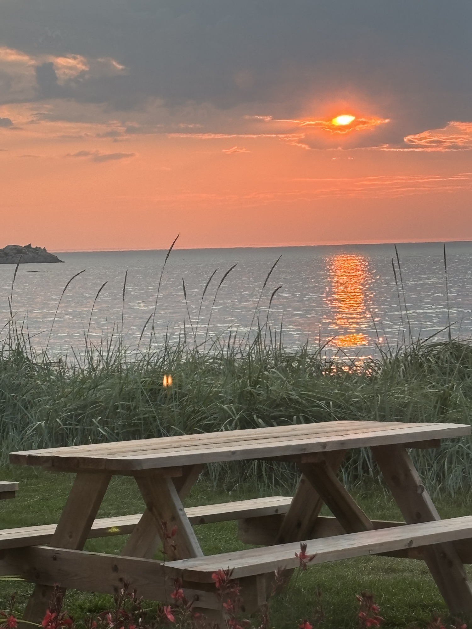 It was 5:45 and they did not open officially until 6. But the waiter (Fares, kinda’ like in Bueller) said he could work us in and to go pick a table. And since we were the first in the room, we picked the one right next to the window looking out on the water! He brought Gail a Prosecco and made me some kind of rum and coke cocktail that was really pretty good. We struck up a conversation about the restaurant and his 10 summers in the area. The menu was a fixed price 4 course meal, but he let us order one and add an extra appetizer which was perfect for us. And he brought the dessert special with candles for the occasion. Both Gail and Fares took photos of the sunset over the water which turned out great! The evening turned out to be a very nice and special celebration. One we will remember.