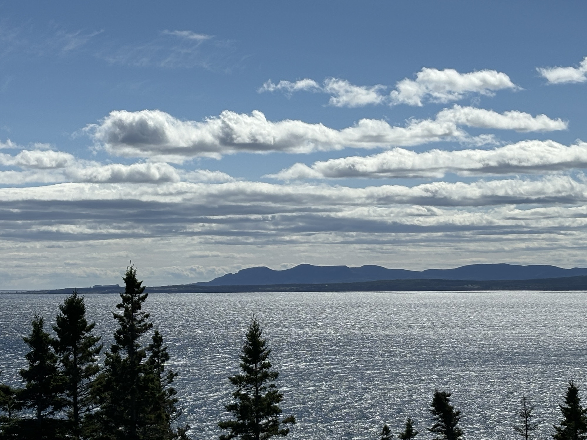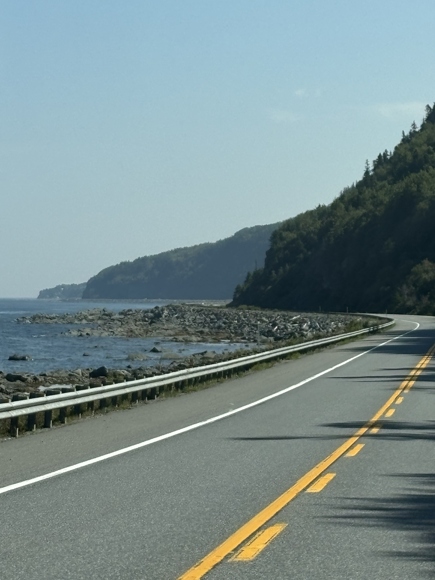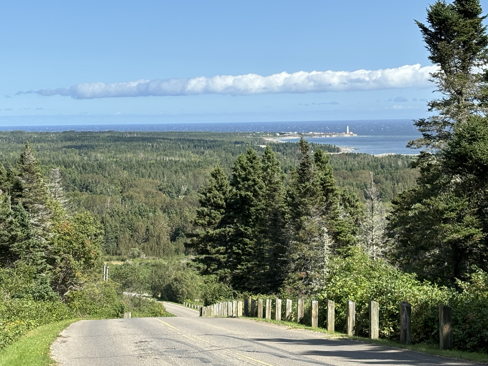 Finally, our last leg of the peninsula was a 200 mile run around the eastern end and back west along the northern coast of Chaleurs Bay to the border again with New Brunswick at Campbellton. The drive was different than the St Lawrence side but still full of vistas and beautiful landscapes.