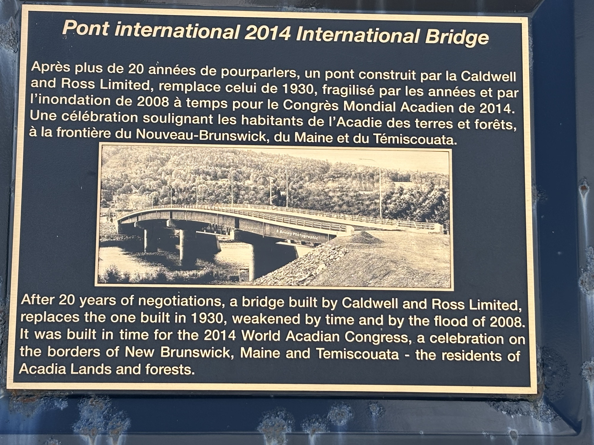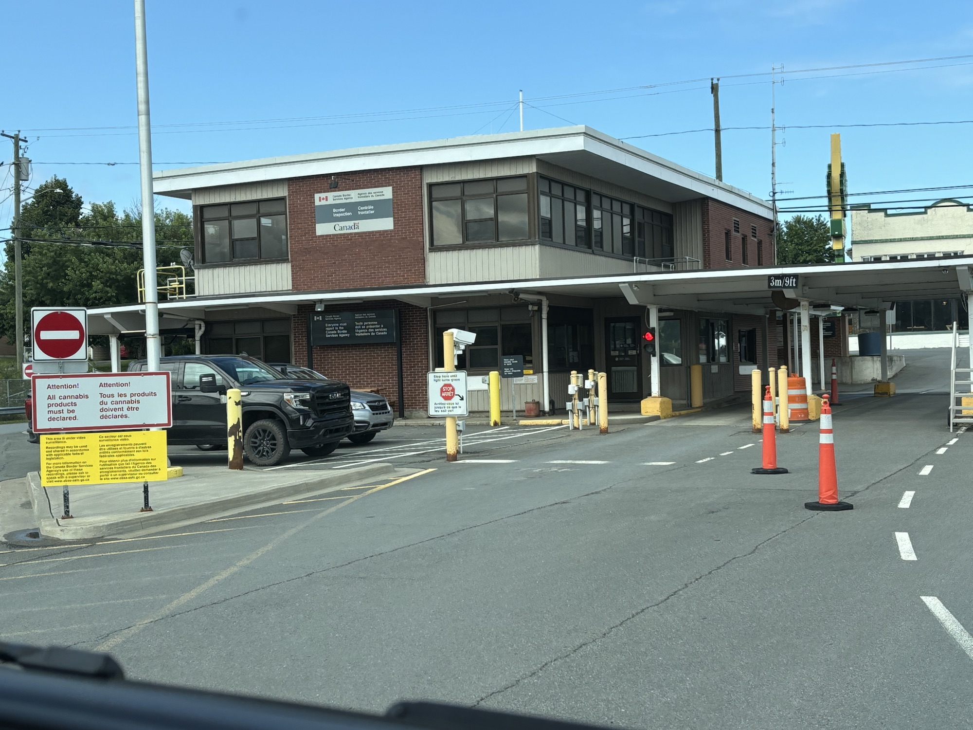 Having seen the end of US1 and the International Bridge, we knew where to go and what to do to clear into Canada. We took off early and made it to the bridge with no problem. In fact, we were the only ones there. We couldn’t fit under the drive through, so we parked to the side, got out and walked to the window. We answered a few questions, showed our passports, and the agent said, “Welcome to Canada”.