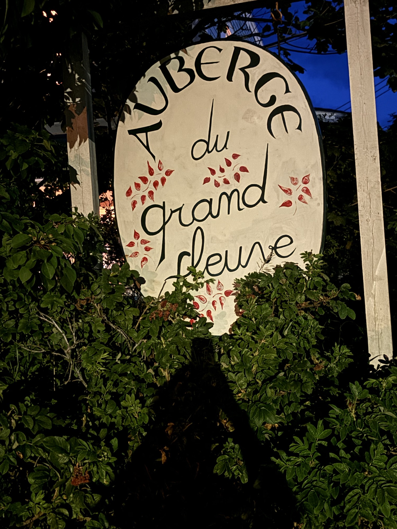 We went back to the RV and changed for dinner. Nothing formal but definitely not shorts and T-shirts! We were looking for a place fit for the occasion with a view of the water. We drove along the beach road until we found one of the small places that was on our list and decided to stop at Auberge du Grand Fleuve.