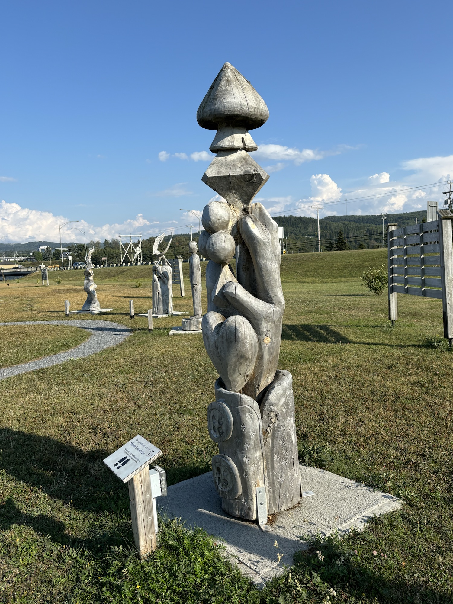 We drove by the town marina and fishing pier on the way back and talked to a local fisherman there who explained the problem. The seals watch you and if they see you reeling in a fish they go after it! We saw several seals around the pier, and they all seemed to be waiting! We also stopped at a large park with sculptures made from single logs and denoting a different subject each year. Very interesting. (See the photos)