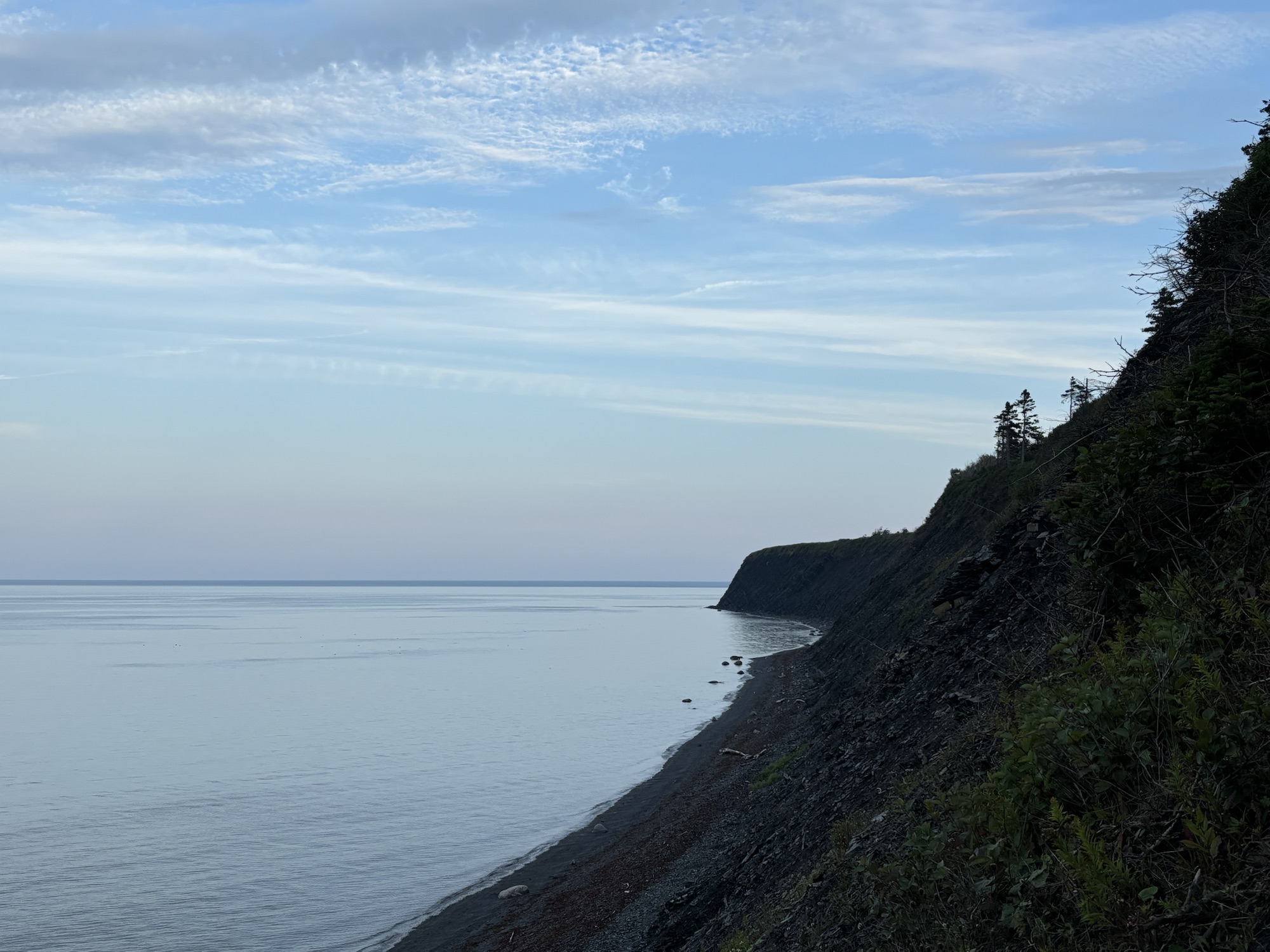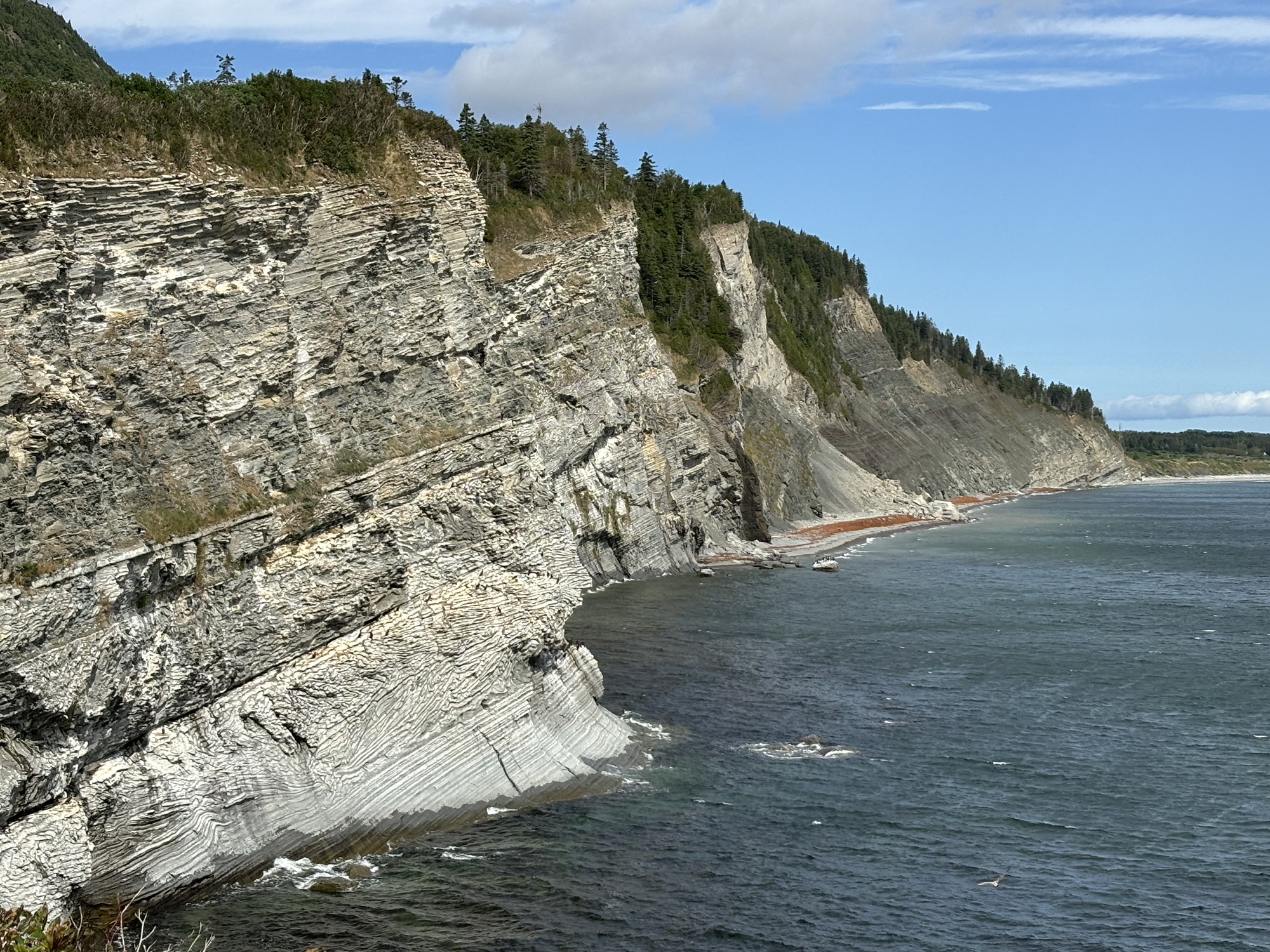 Our last stop on the peninsula was out at Anse au Griffon near Gapse itself. We finally saw two ships on the Seaway. A cruise ship going west and the other a freighter going east. After getting settled, we drove out to the visitor center of the Forillon National Park to get information about the park and watched a nice 30 minute video about the park’s geological features. We also did a couple of short hikes around the center.