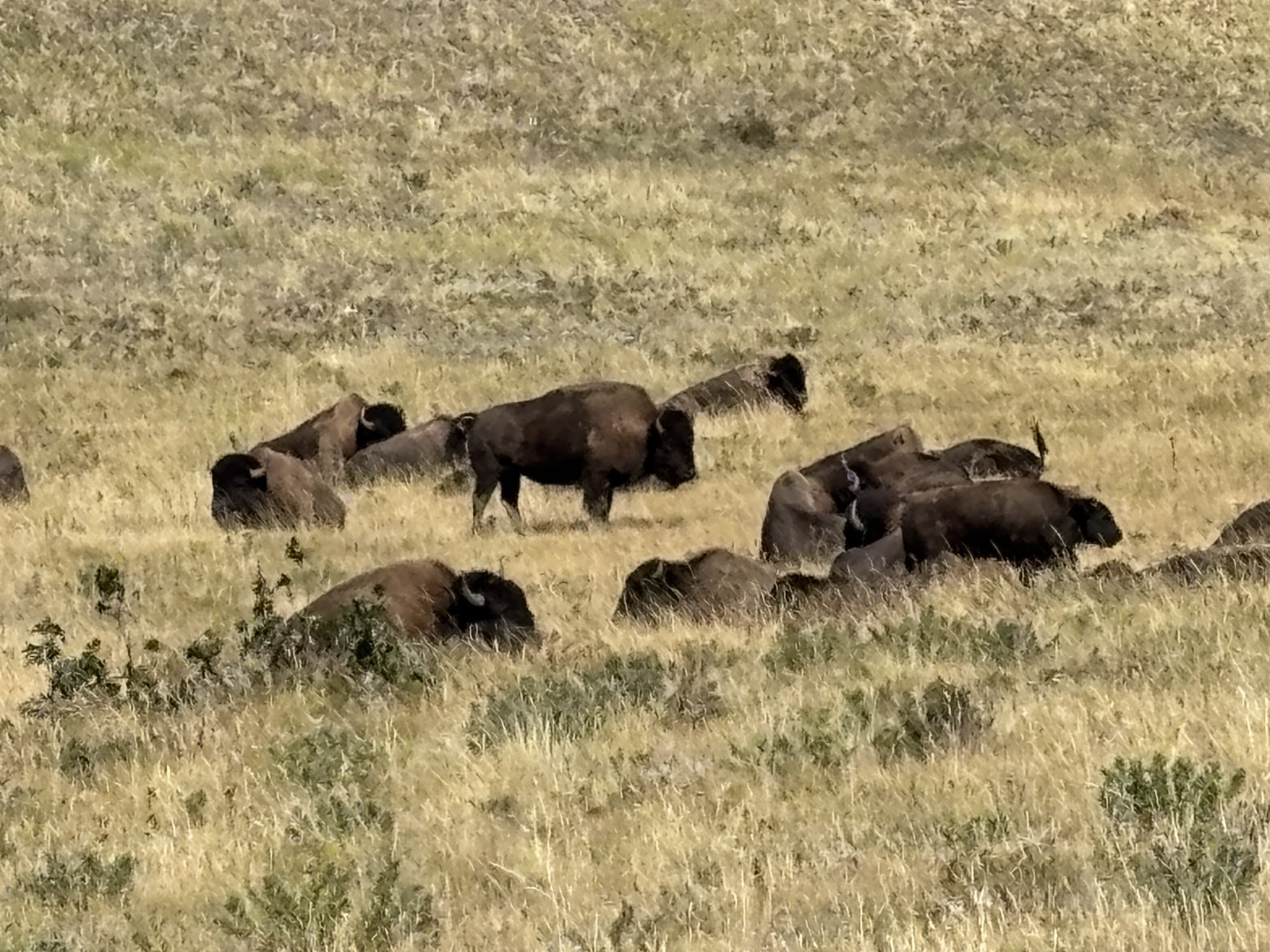 The first was to the Buffalo Paddock. This is a large drive through pasture with a herd (?) of buffalo but they appeared to be hiding until just at the end of the drive when they showed up. Not really close enough to see but a lazing herd of about 25 none the less. On the way out of the paddock, we stopped and did a short hike up to an overlook of the area. Nice views.