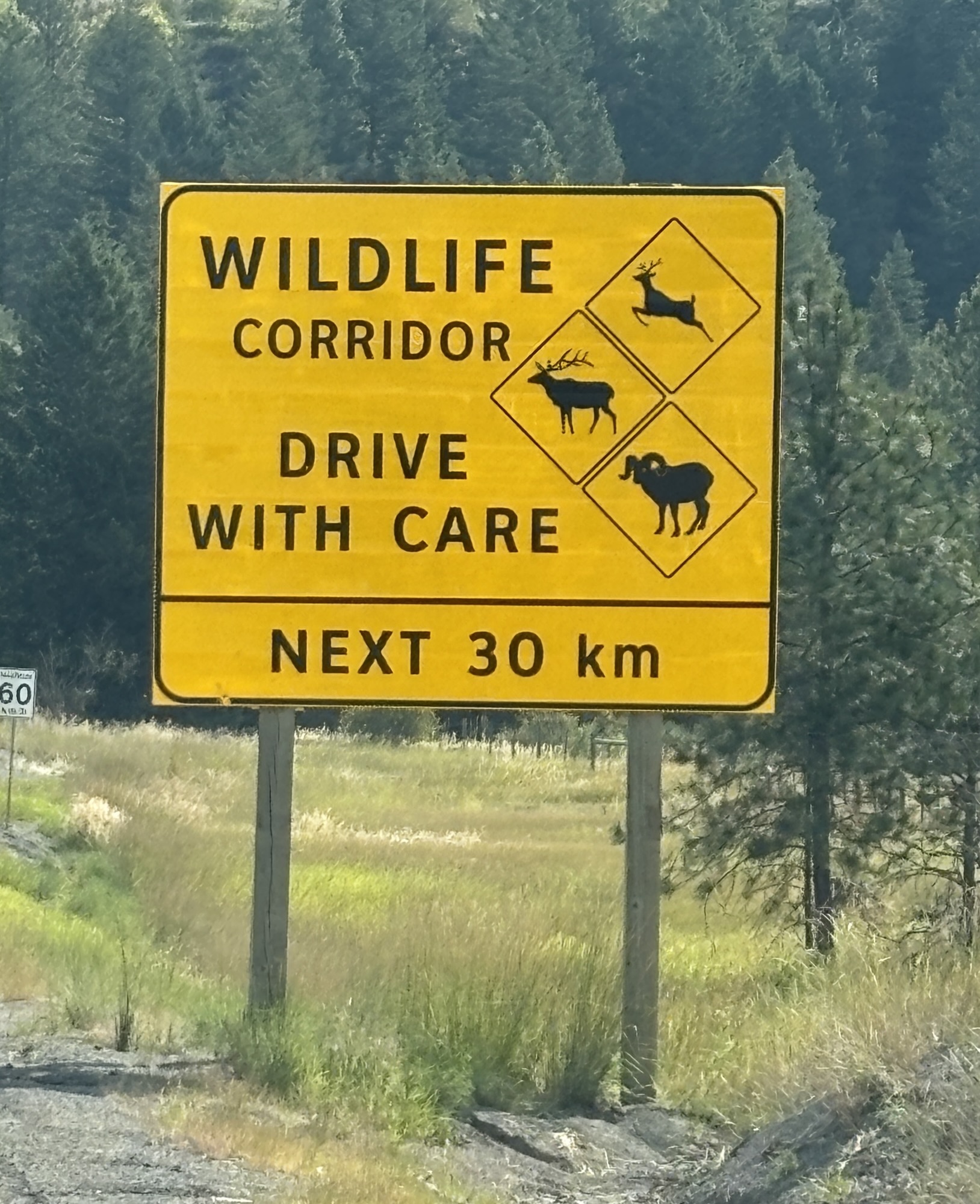 From Elko, BC, we headed south some more on a winding path to reach the Waterton Lakes National Park. The road took us through the Crowsnest Pass and we crossed back into Alberta from British Columbia. We were fascinated by the different wildlife signs. I guess Moose and Longhorn Sheep don’t live in the same area.