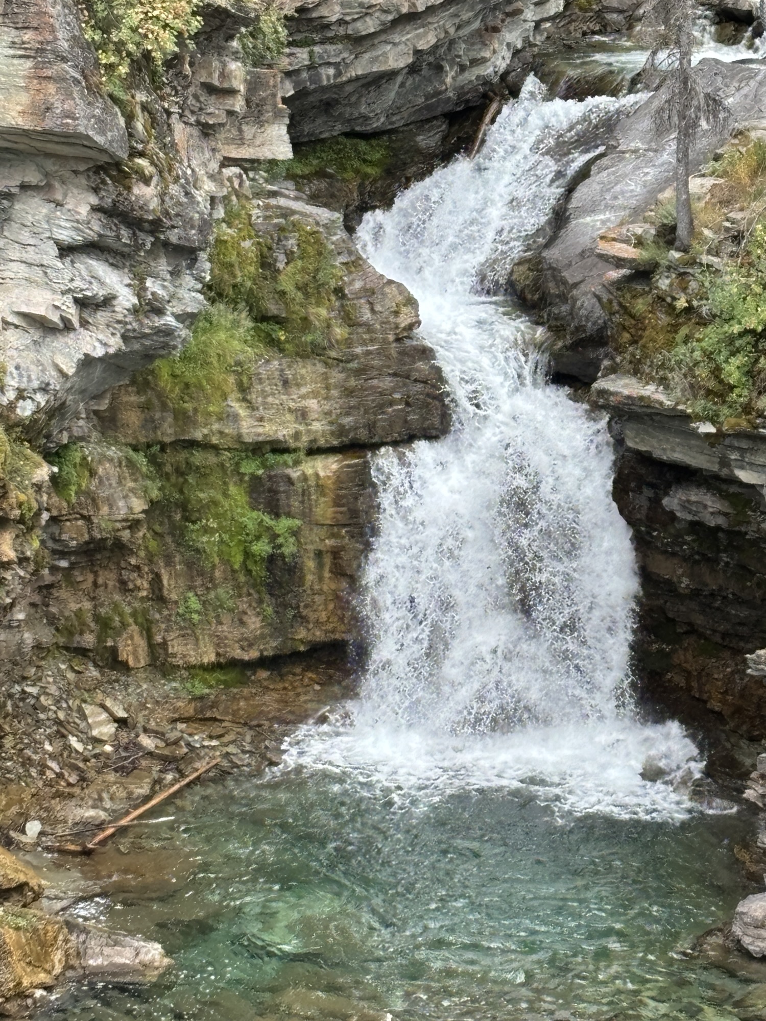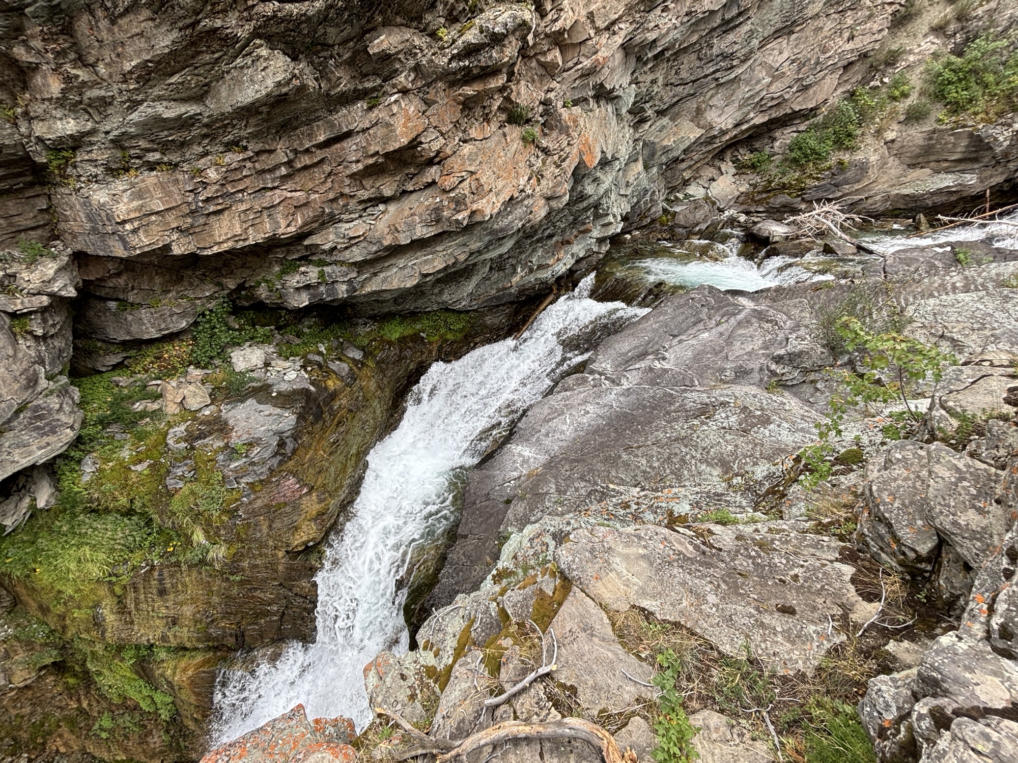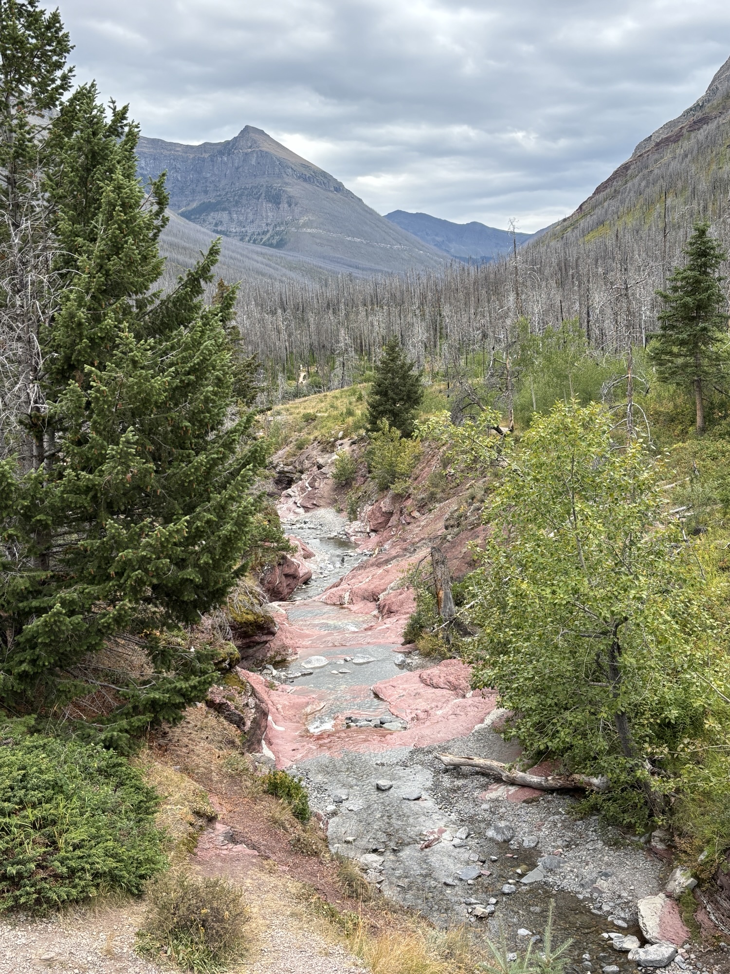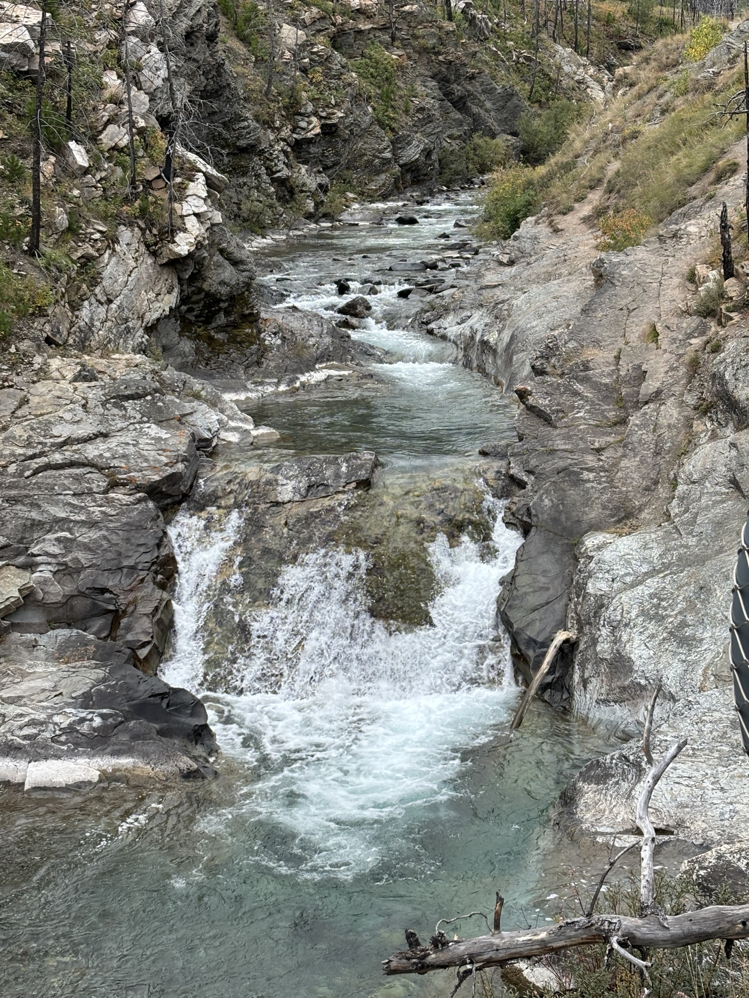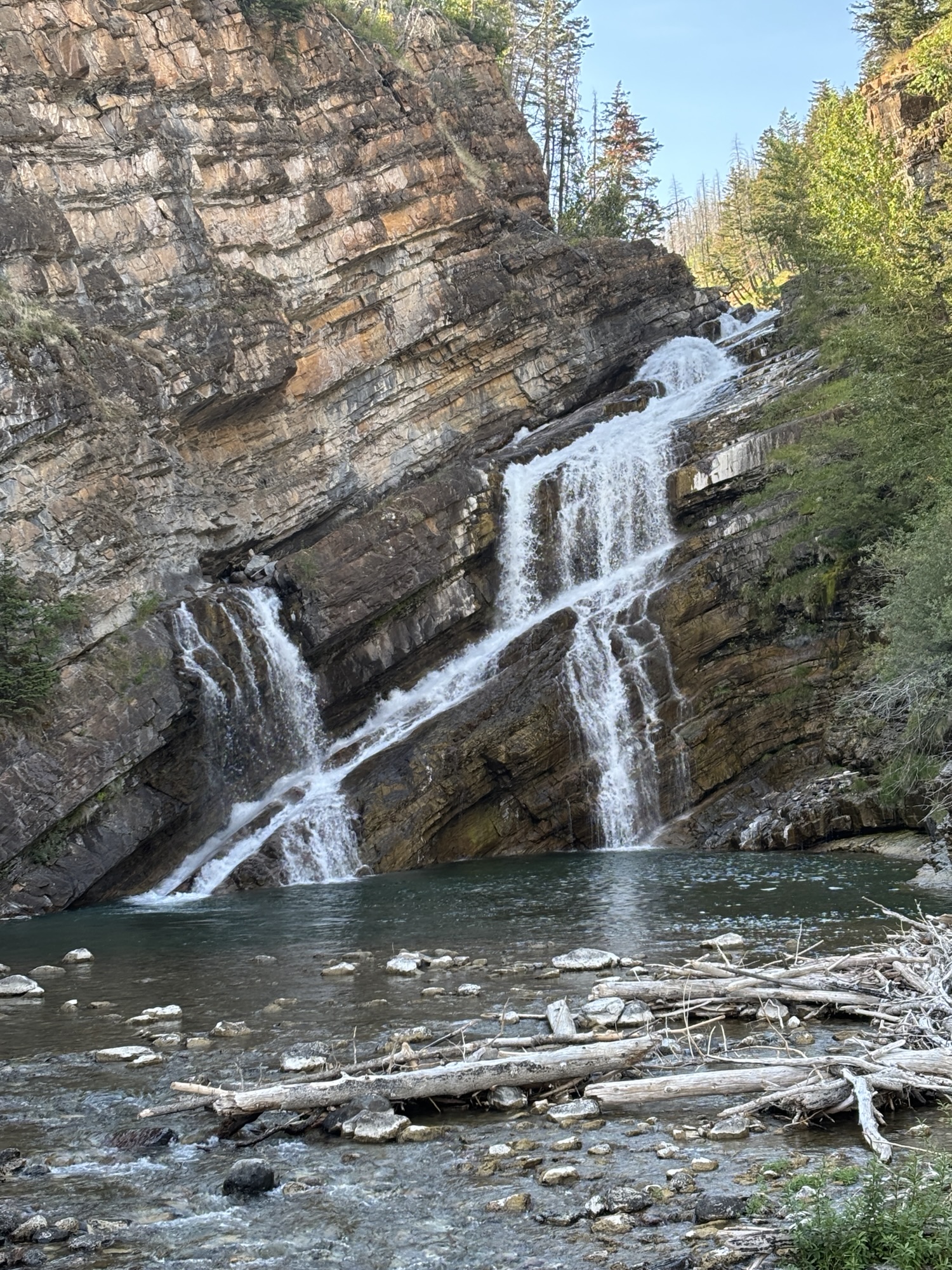 We selected the Red Rocks Drive the next day. This is an area where the rocks have a high content of iron and with the exposure to the weather the iron “rusts” and turns red. The drive is about 12 miles up from the park road to Blakiston Falls through an area that was destroyed by fire in 2017 when almost 40% of the park burned. But a nice hike through the canyon and very nice view of the falls.