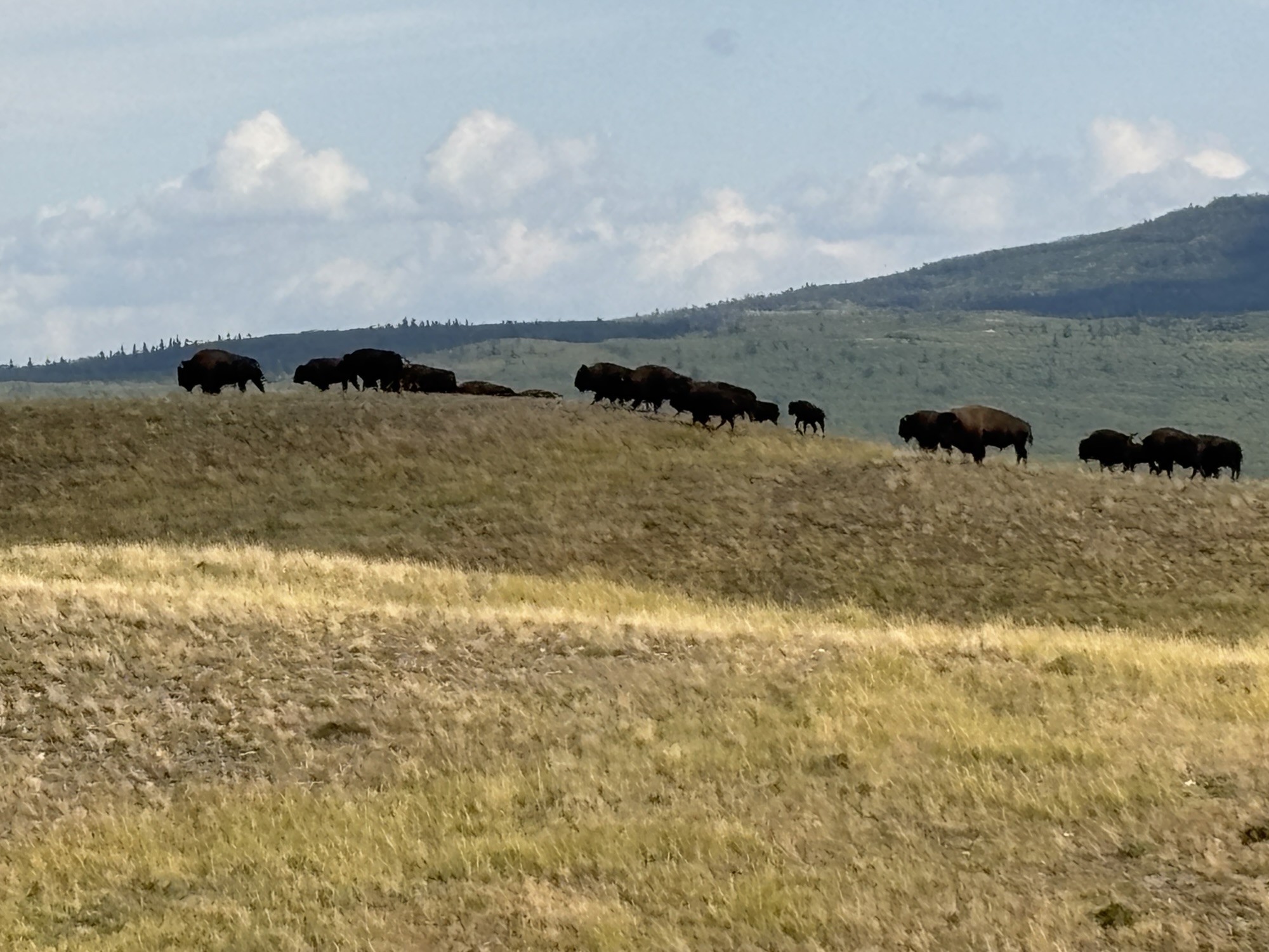 Another short walk to Akamina Lake, then back down to town and out to the buffalo paddock one more time. It was well worth the drive this time as we found the buffalo out and much more active coming up very close to the Jeep!
