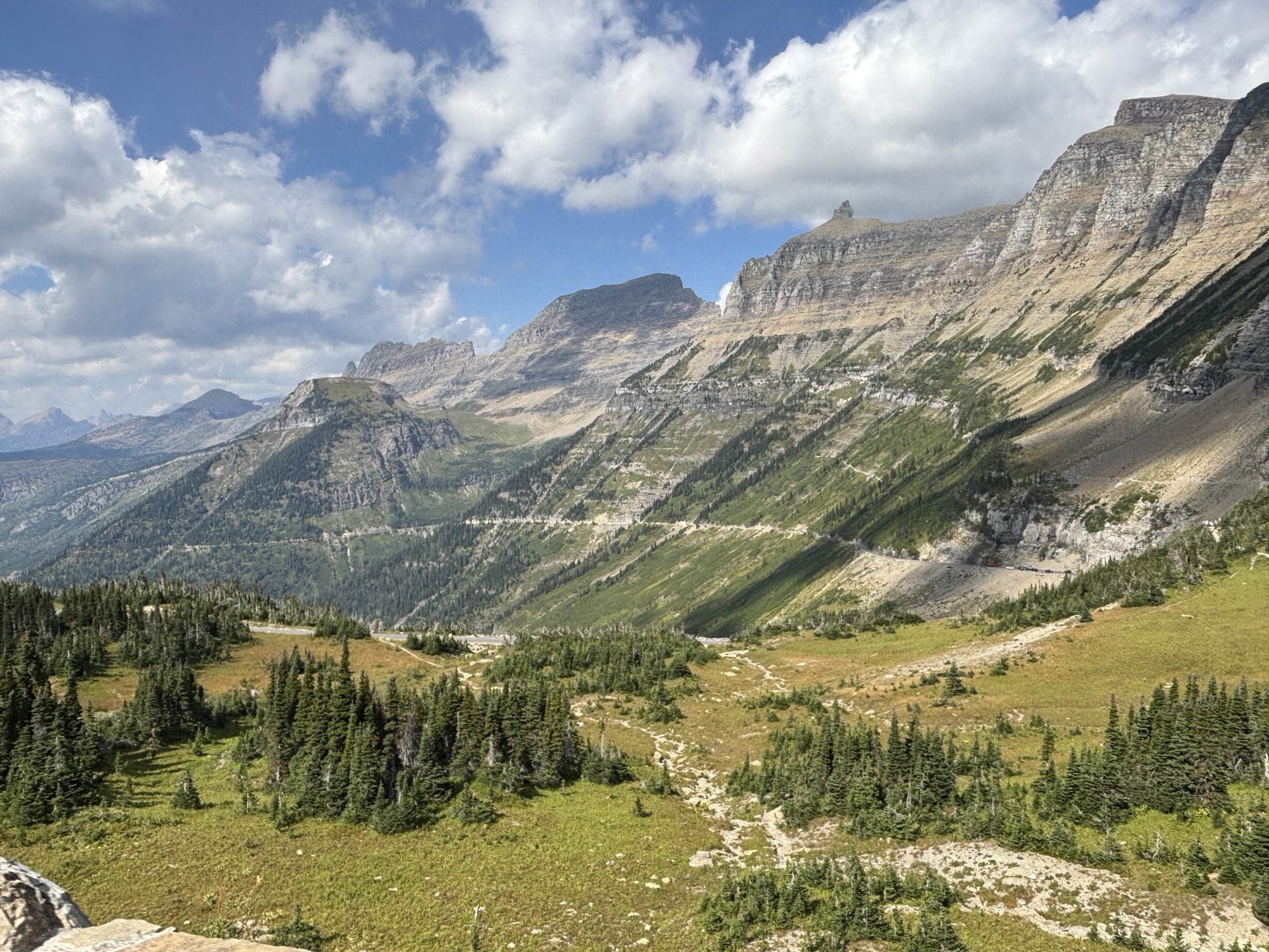 And then on our last day and the Tuesday after the holiday, we went back to the Road-to-the-Sun and stopped at several places we had to pass up the first day. The traffic was noticeably less, and we got parking at the turnouts.
