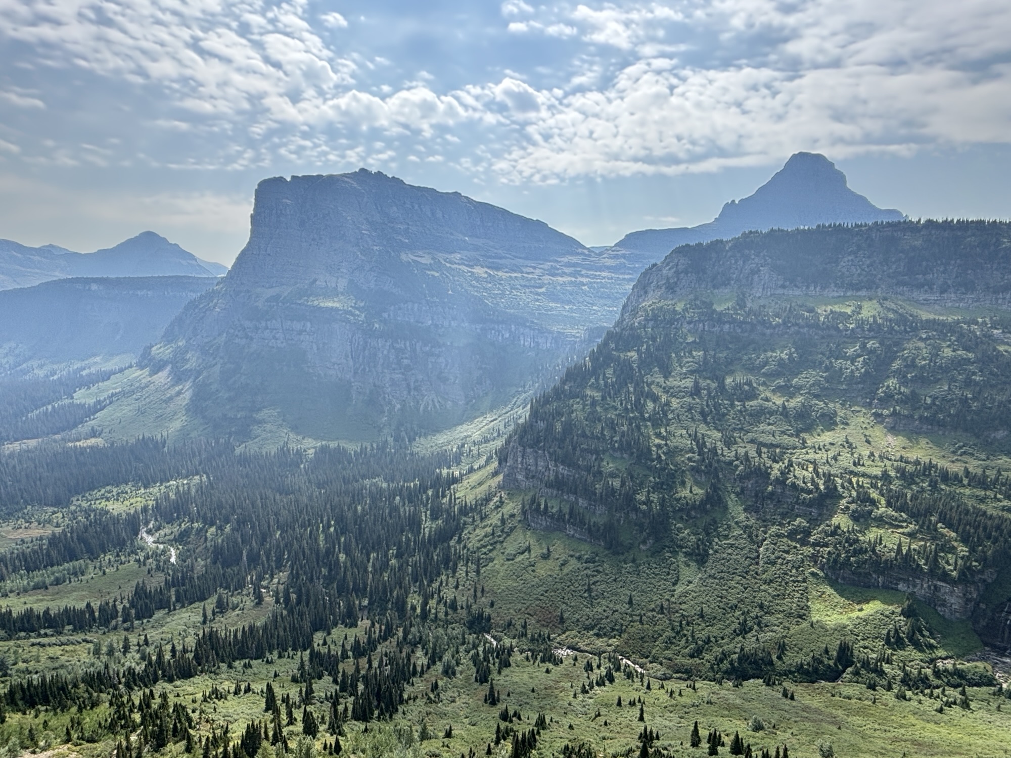 On the first day after we got settled, we decide to drive the Road-to-the-Sun. This is the key road through the park and the primary visitor destination! And the main stop is at Logan Pass visitor center at the Continental Divide. We didn’t expect to find any parking there but hoped to be able to find some parking other pullouts and scenic areas. We took off kind of blindly to see what we could find. And we took the tops of the Jeep to enhance the views and, overall, we were not disappointed.