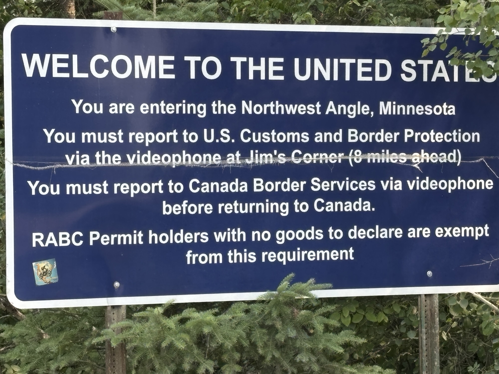 Angle Inlet is in the US but separated from the border by Lake of the Woods. Remember, the Rainy River runs into the Lake and the border extends up through the middle. But there is a spit of land that, by the original border placement agreement, is north of the lake but inside the US. Check the link for more information.