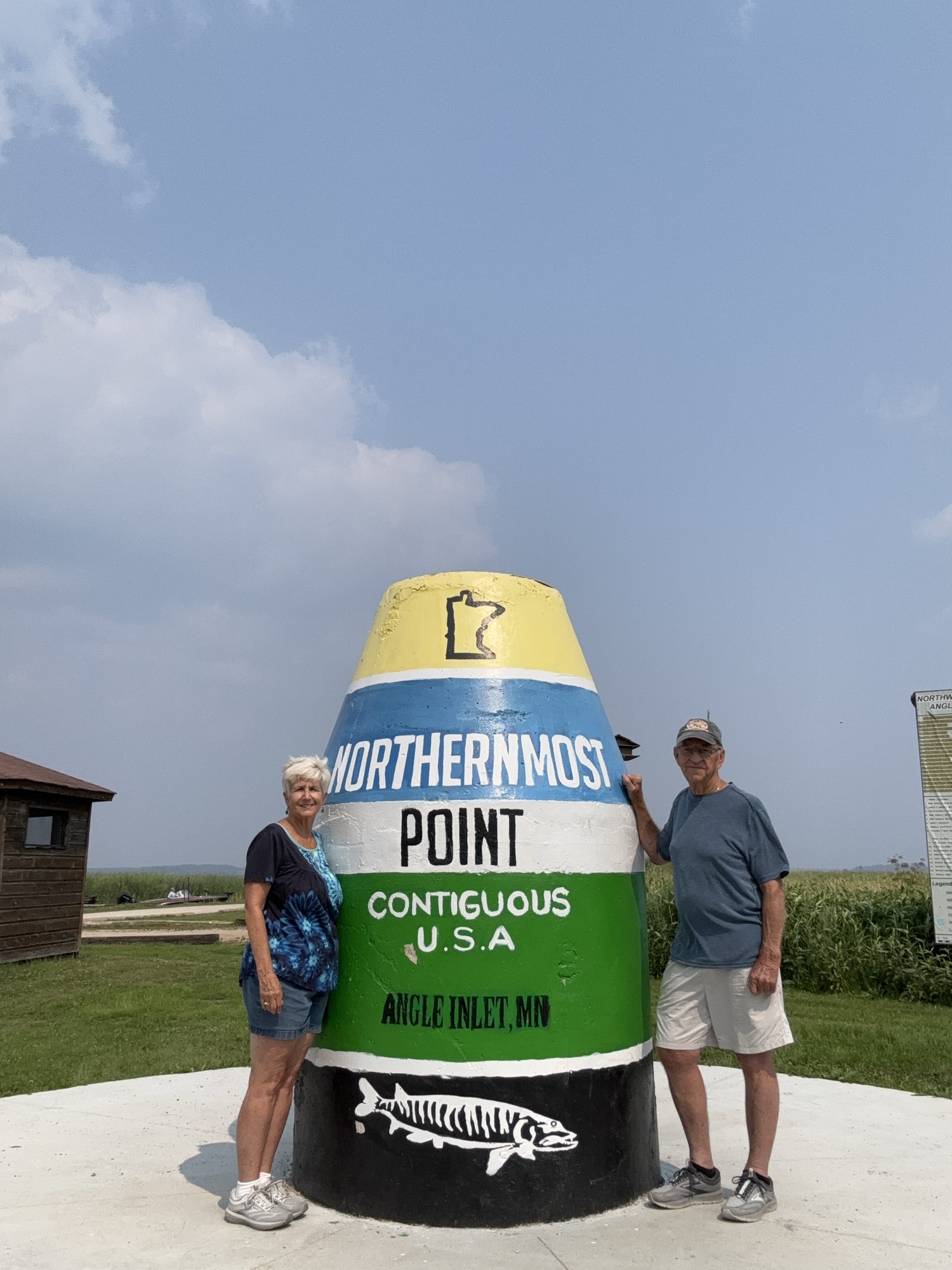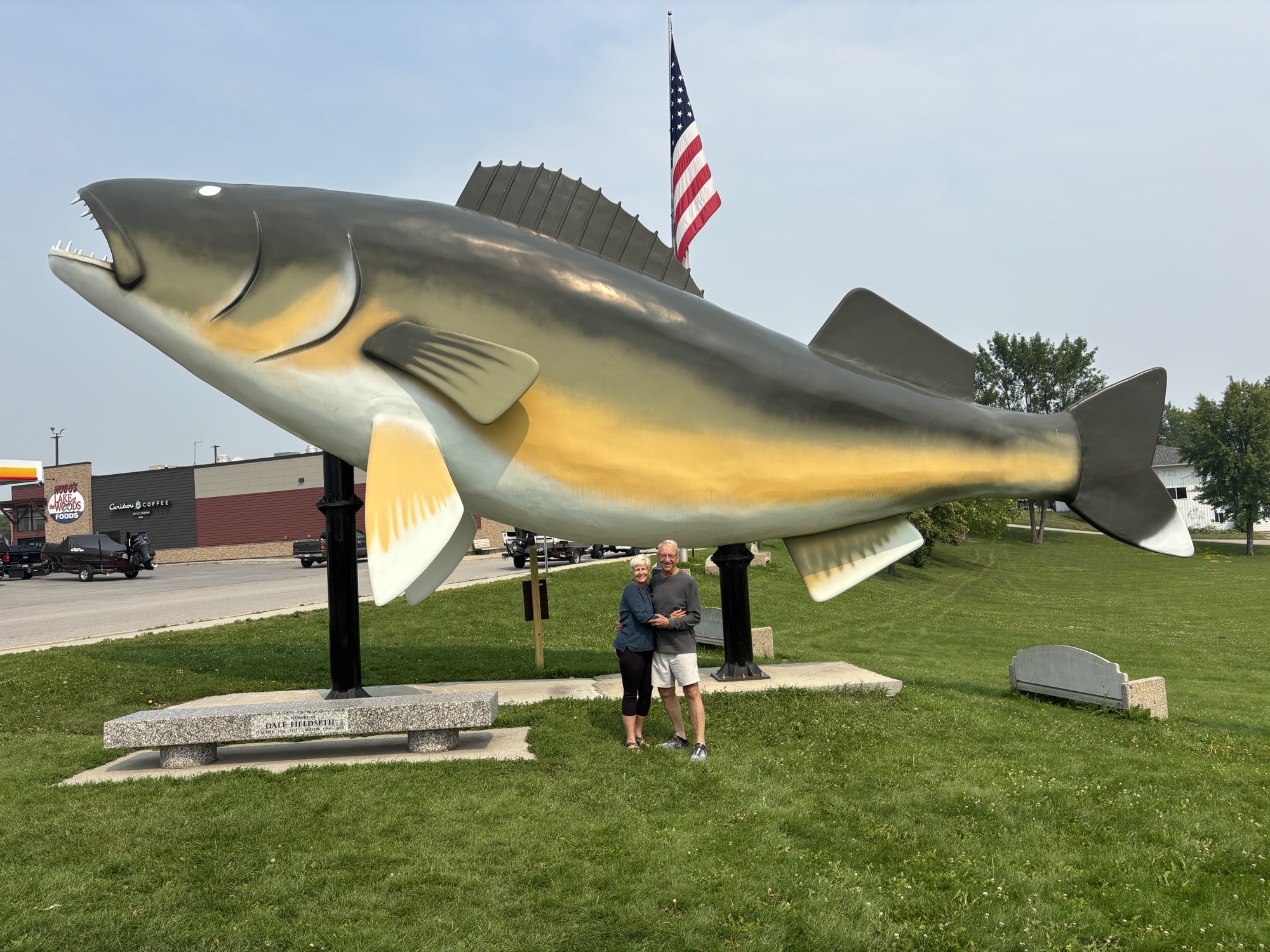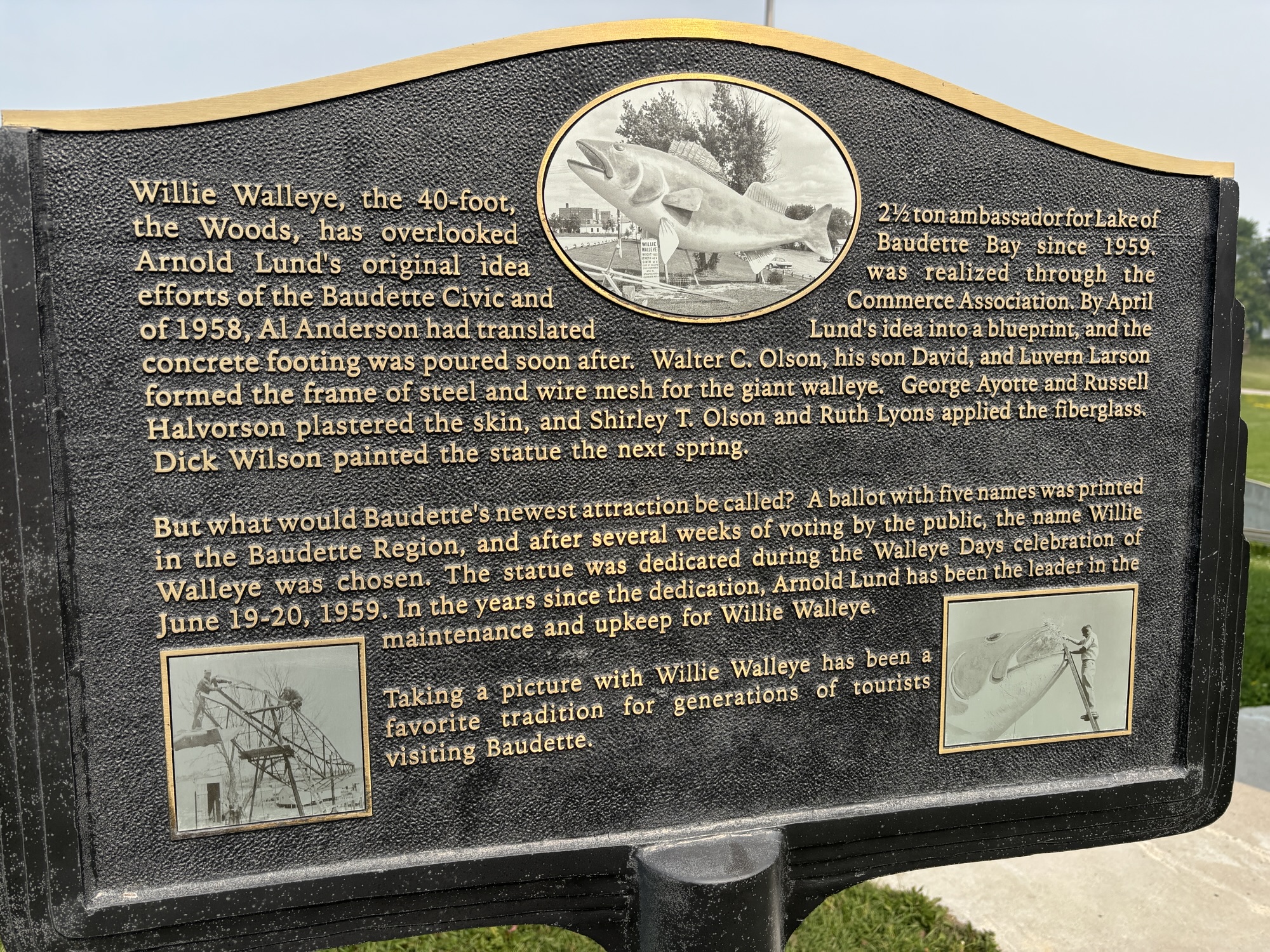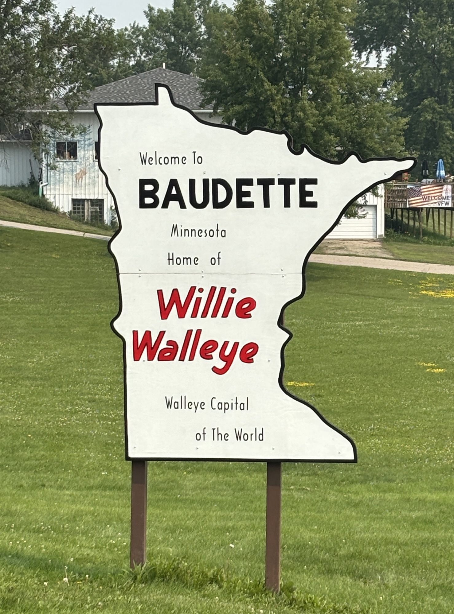 The river drive and the portion of the border runs out as the river connects to Lake of the Woods. The major town at this junction is Baudette, MN known as the Walleye Capital of the World and is famous for the giant statue of Willy Walleye. You just have to stop. The Rotary Club even put a tripod and camera holder in the park for people to take selfies with Willy. Check out the link for the whole story.
