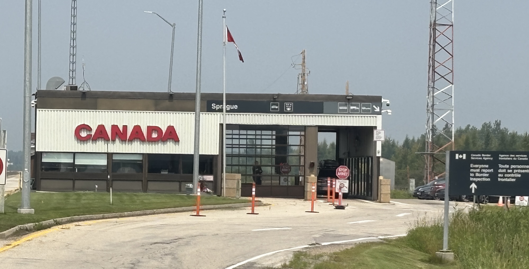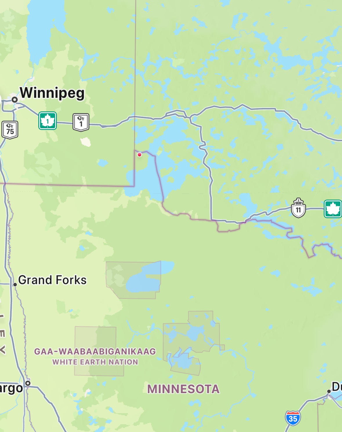 Then on up Hwy 11 to the town of Warroad, MN and north onto Hwy 313 to the border crossing into Canada. The guard came out to the RV, and I showed him our passports. He asked a couple of questions and let us through. Not too busy a crossing as you might expect. Easy.