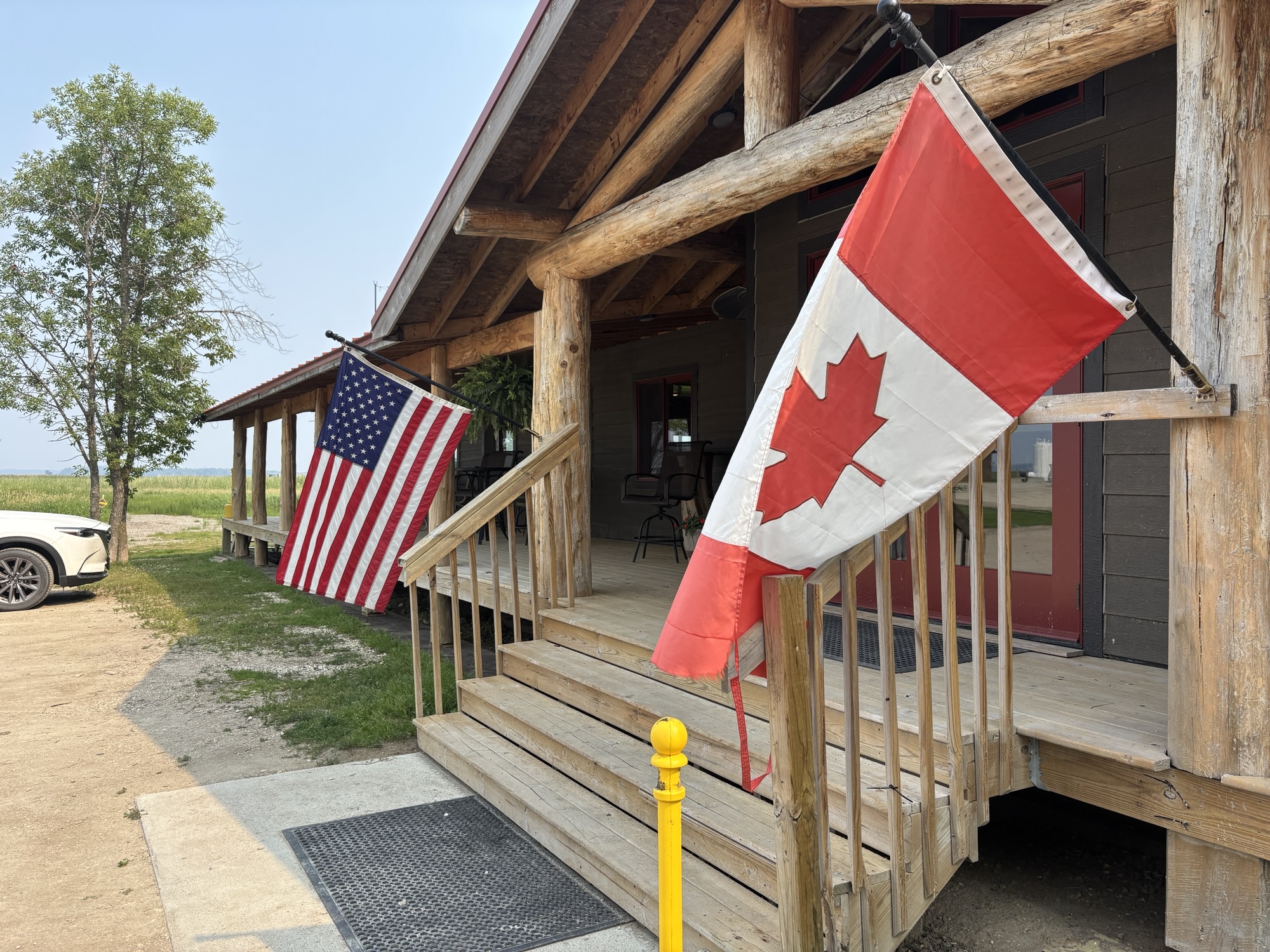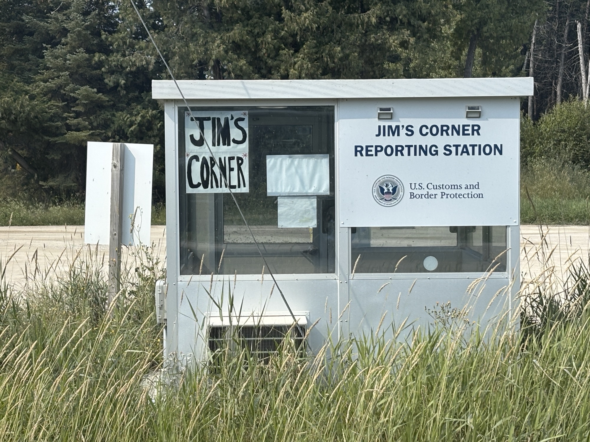 But now we had to “clear in” to Canada again even though we had just cleared out about an hour ago. So… We found the phone booth with a direct line to Canada Immigration and called. We got a very nice agent on the phone who proceeded to ask us all about our travel plans and itinerary! More than anyone had ever asked. But in the end, he welcomed us, and we headed back down the dirt and gravel road to the RV park!