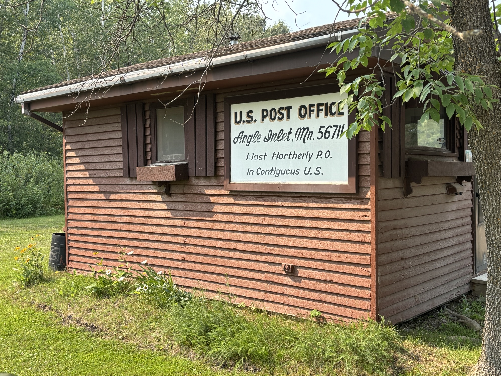 And there is a special monument, shaped like the buoy one everyone knows in Key West, FL, that you see on TV during all the hurricane coverage, that declares that Angle Inlet is the most northern point in the contiguous United States. And it is simply because there are no other towns located above 49 deg N latitude (except of course in Alaska, but that’s not contiguous) which are located the northern border latitude between the US and Canada. But there is a post office!