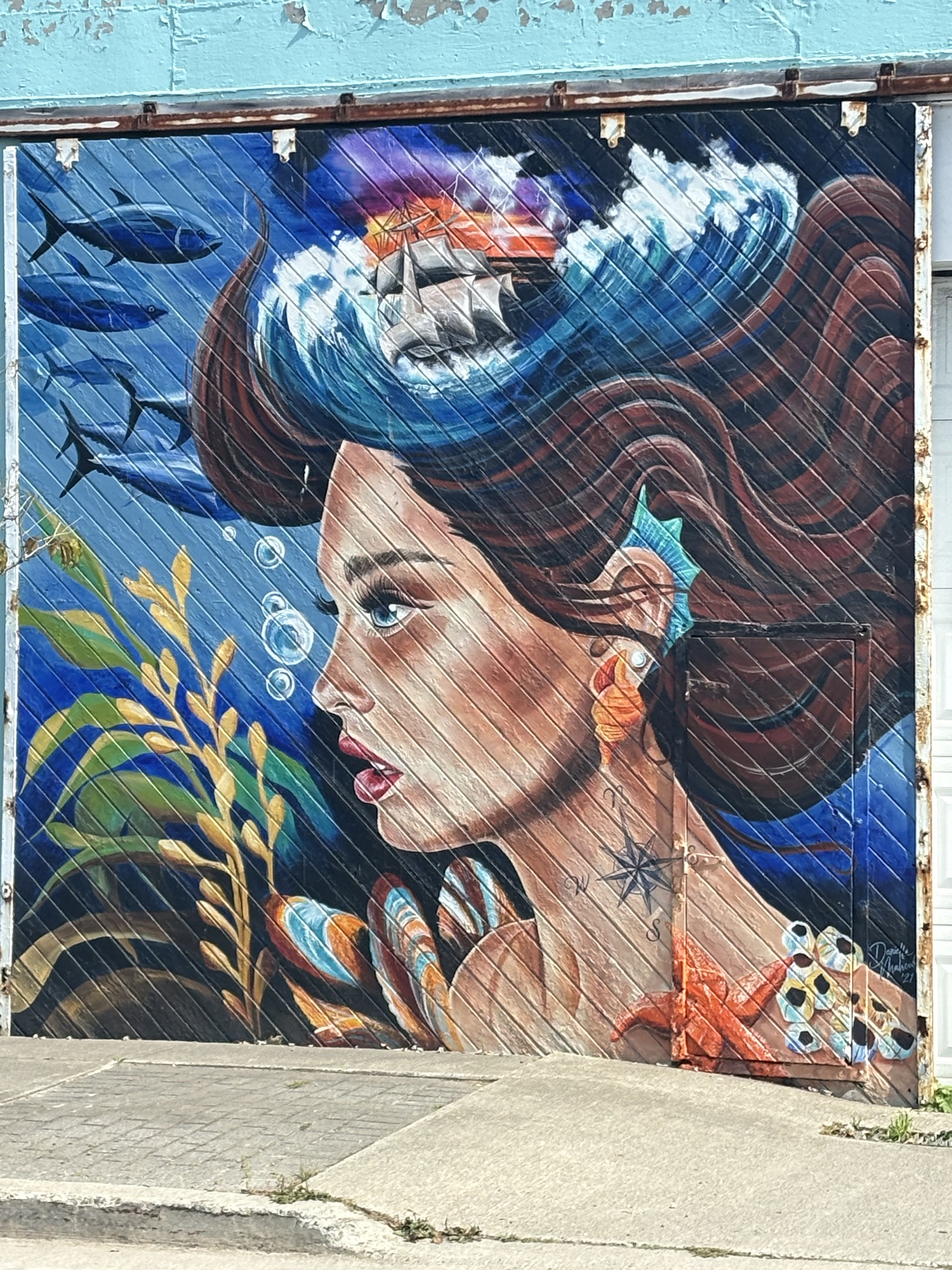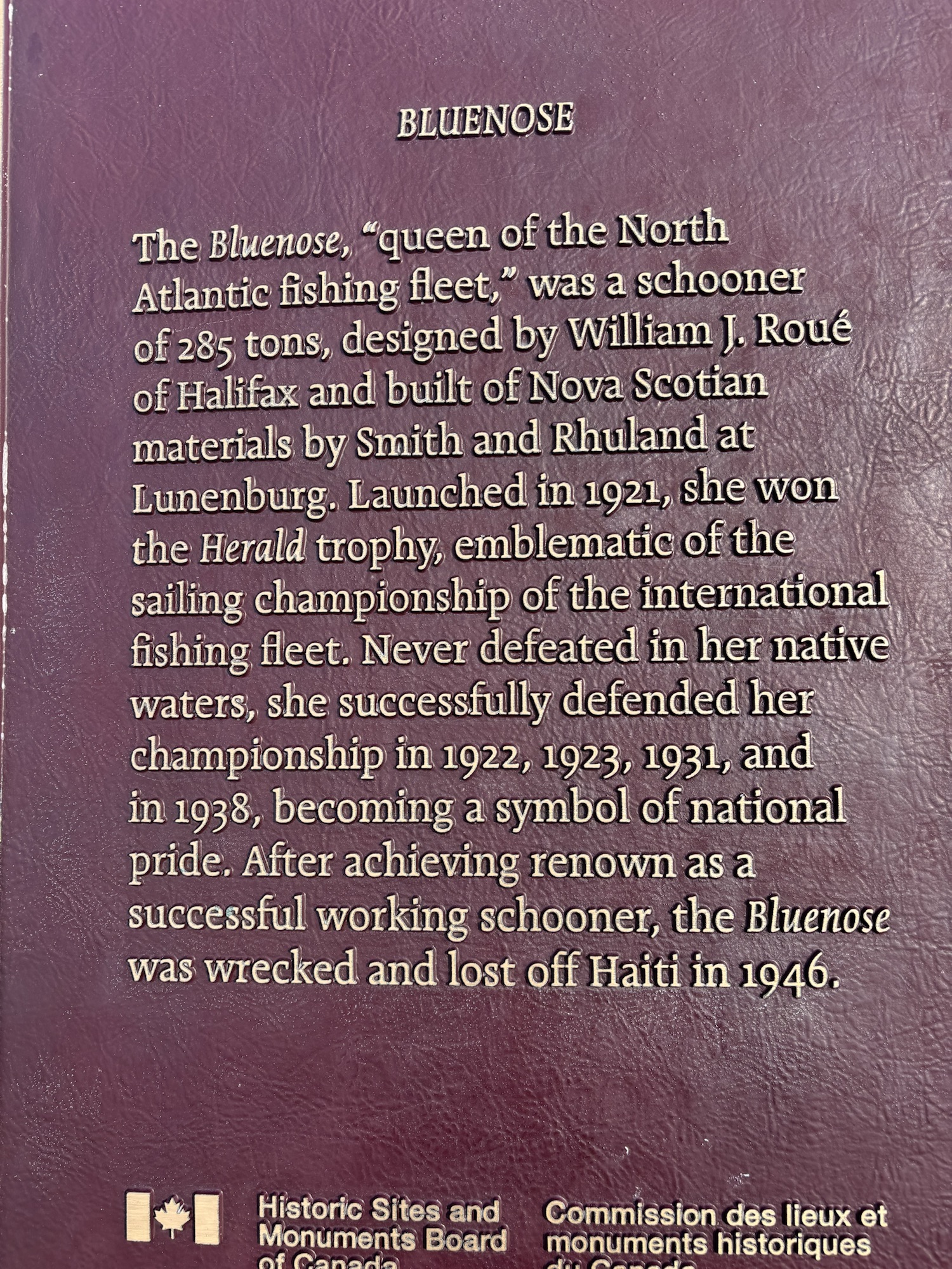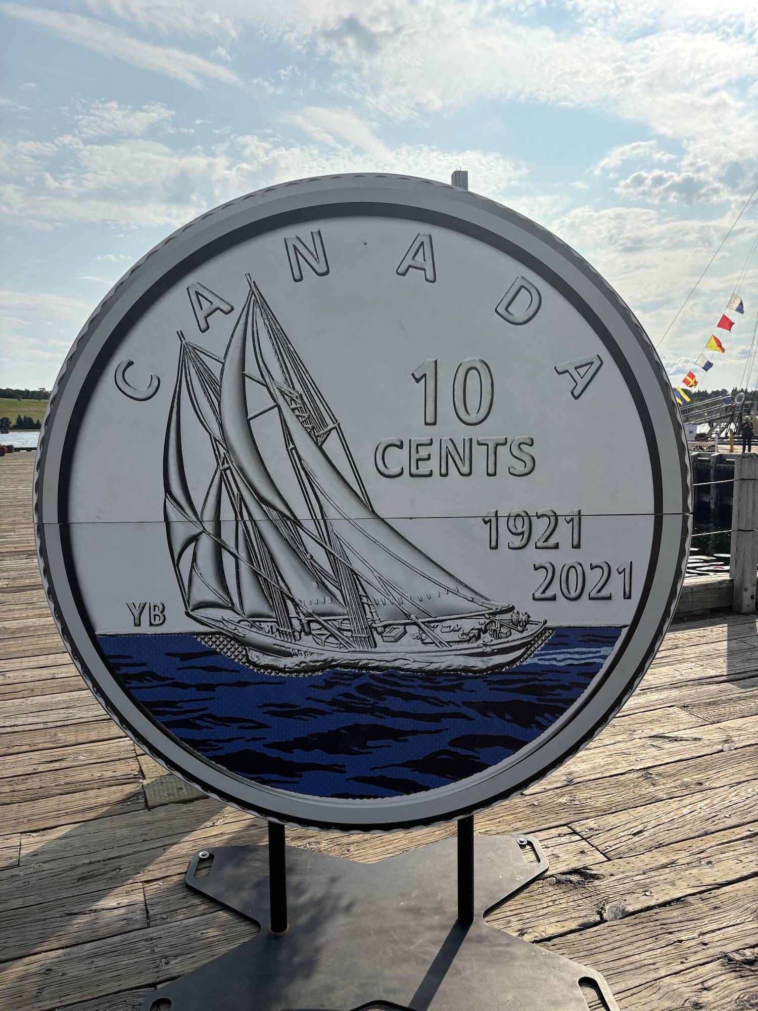 It is also known as the home of the famous schooner named Bluenose II, a reproduction of the original Bluenose that was lost at sea. The Bluenose was famous as both a working fishing boat and the winner of 4 International Fisherman Cup Races. It looked familiar to us as we realized that we actually have a model of it on our bookcase at home. (Thank you, Pete Clancy!) And it is seen on the Canadian dime and many other posters as an icon to Canadian sailing.