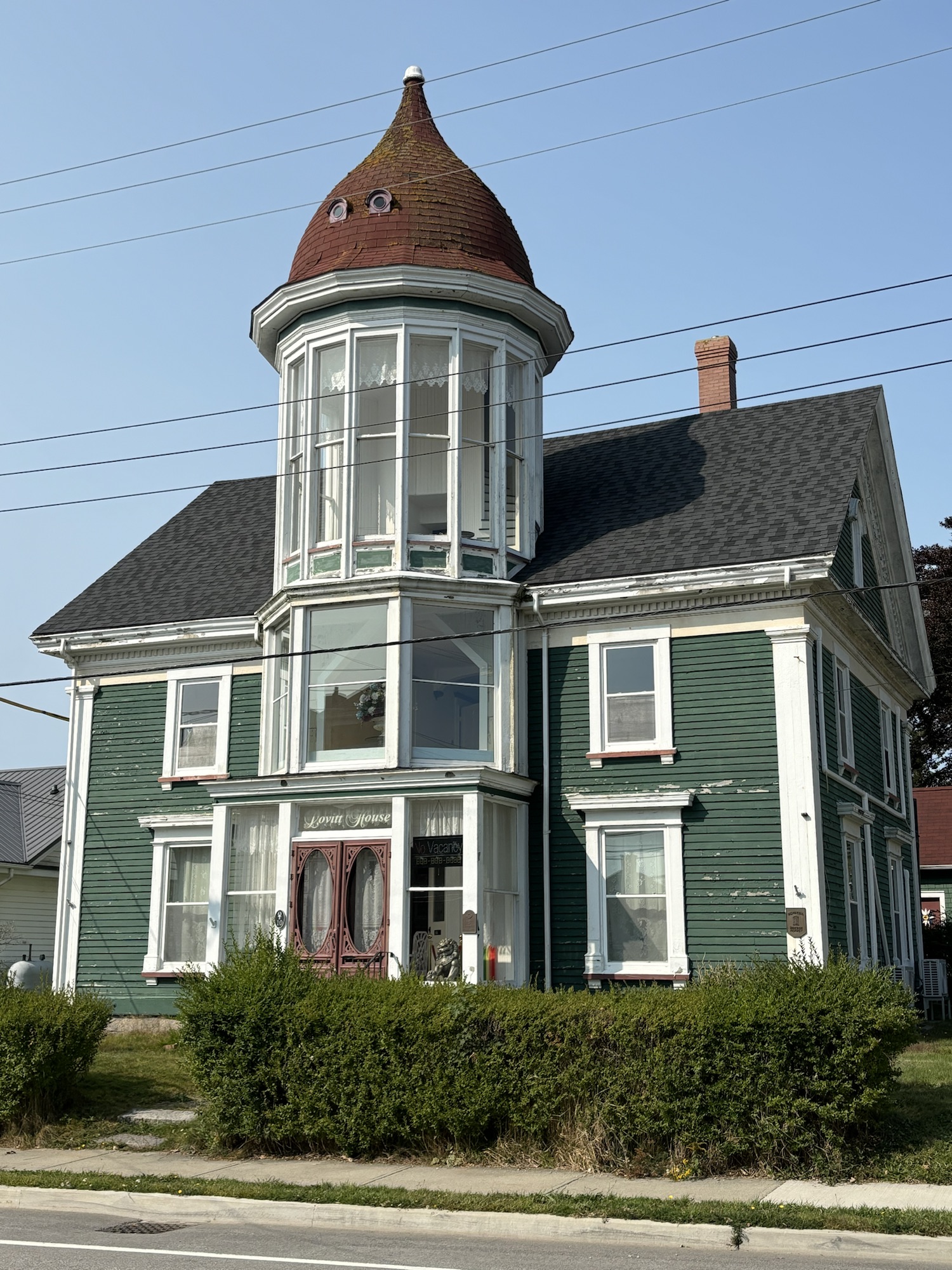 Next, we drove down the coast to the southwestern tip of Nova Scotia and to the town of Yarmouth. Some additional history here is that Yarmouth was once a major shipbuilding and fishing port. And its proximity to the US coast (Maine) made it a large trading stop for goods going from the US to Europe. The town is still famous for fishing and the famous lighthouse on the tip of Cape Forchu. The lighthouse has an unusual design called Apple Core because of the narrow tower with the light at the top.