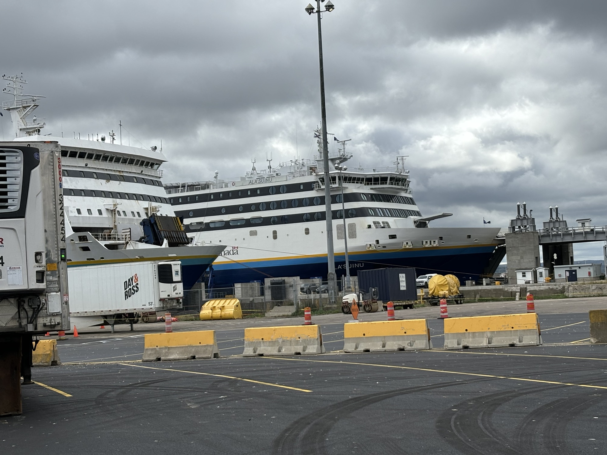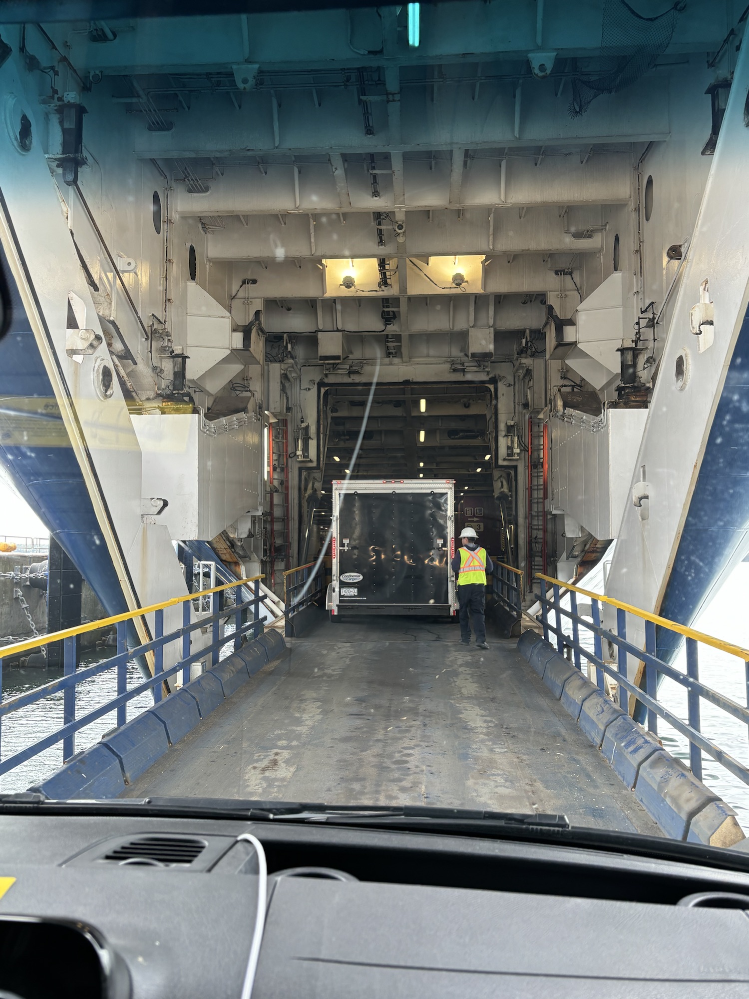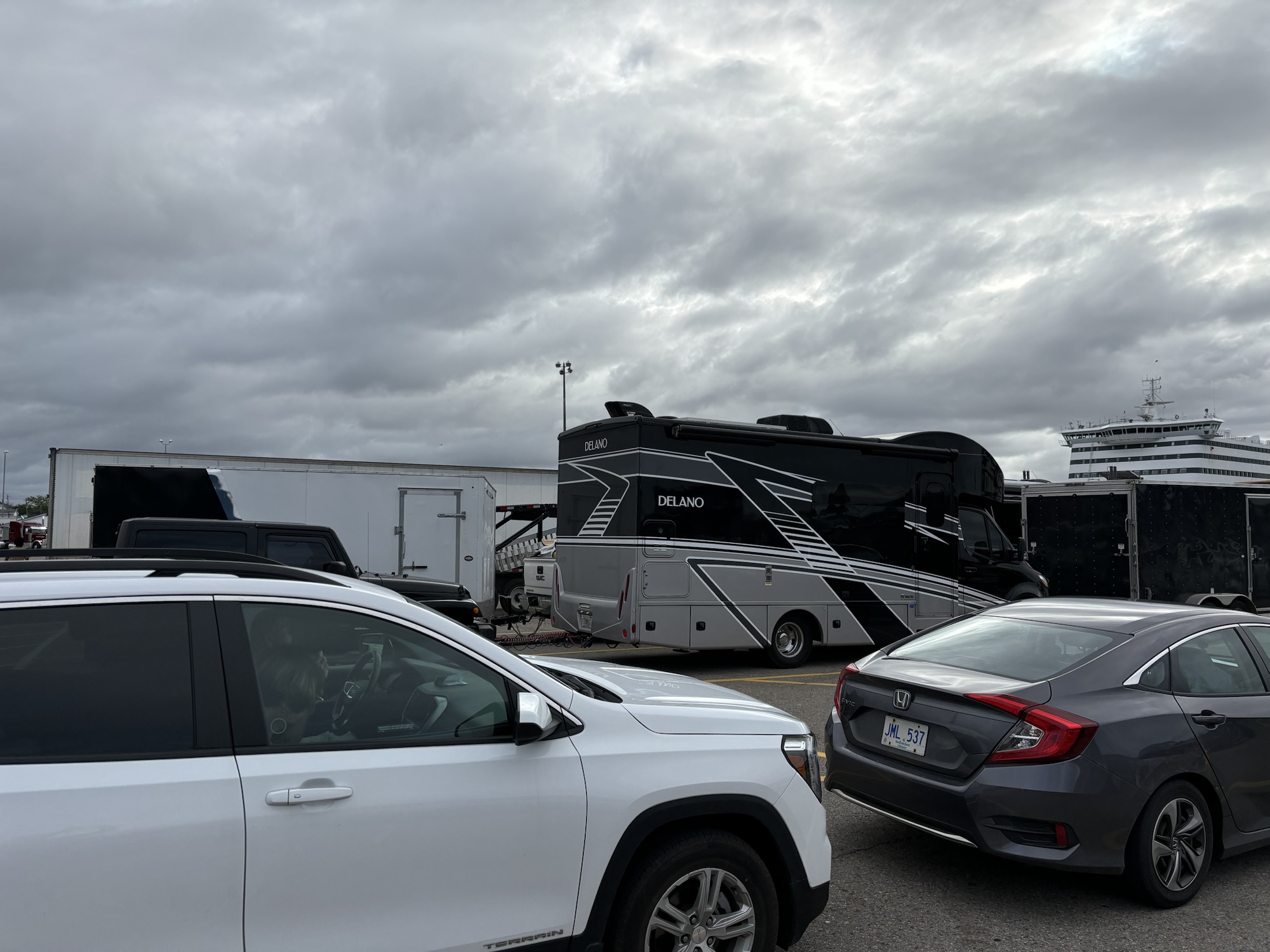 We got them a reservation at Shark Cove RV with us and the next morning we were up and ready for the ferry. As I mentioned, the drive over was only about 5 miles, and we were to be checked in 2 hours before departure at 11:45 am. Easy drive over, easy check in, and then the wait. We all got out and met with other “waiters”. One turned out to be the husband of a Jeanneau Yacht broker from Montreal who was delivering a trailerable power boat to Newfoundland. I had met him at the Annapolis boat show several times over the years but only in passing with his wife. Such a small world.