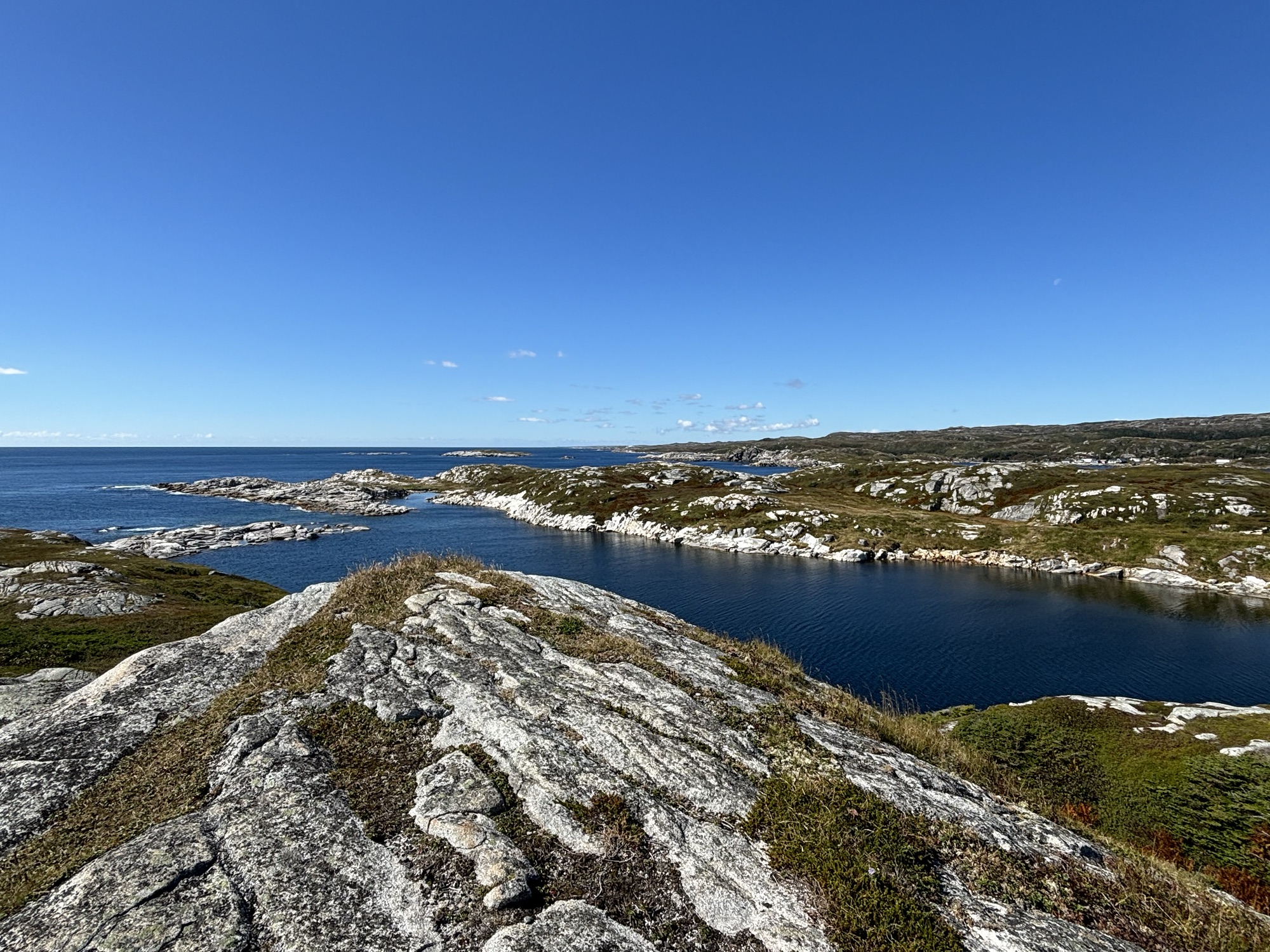 We stopped at the Rose Blanche Lighthouse for a walk. The entrance area, the concessions, and the facilities were closed for the season but the trail out to the coast and the lighthouse were open. This lighthouse is famous as it is made of granite and is the only one like that in the Canadian Maritimes. There is definitely a lot of granite around! The coastline was very rugged, but the walk was relatively easy and interesting.