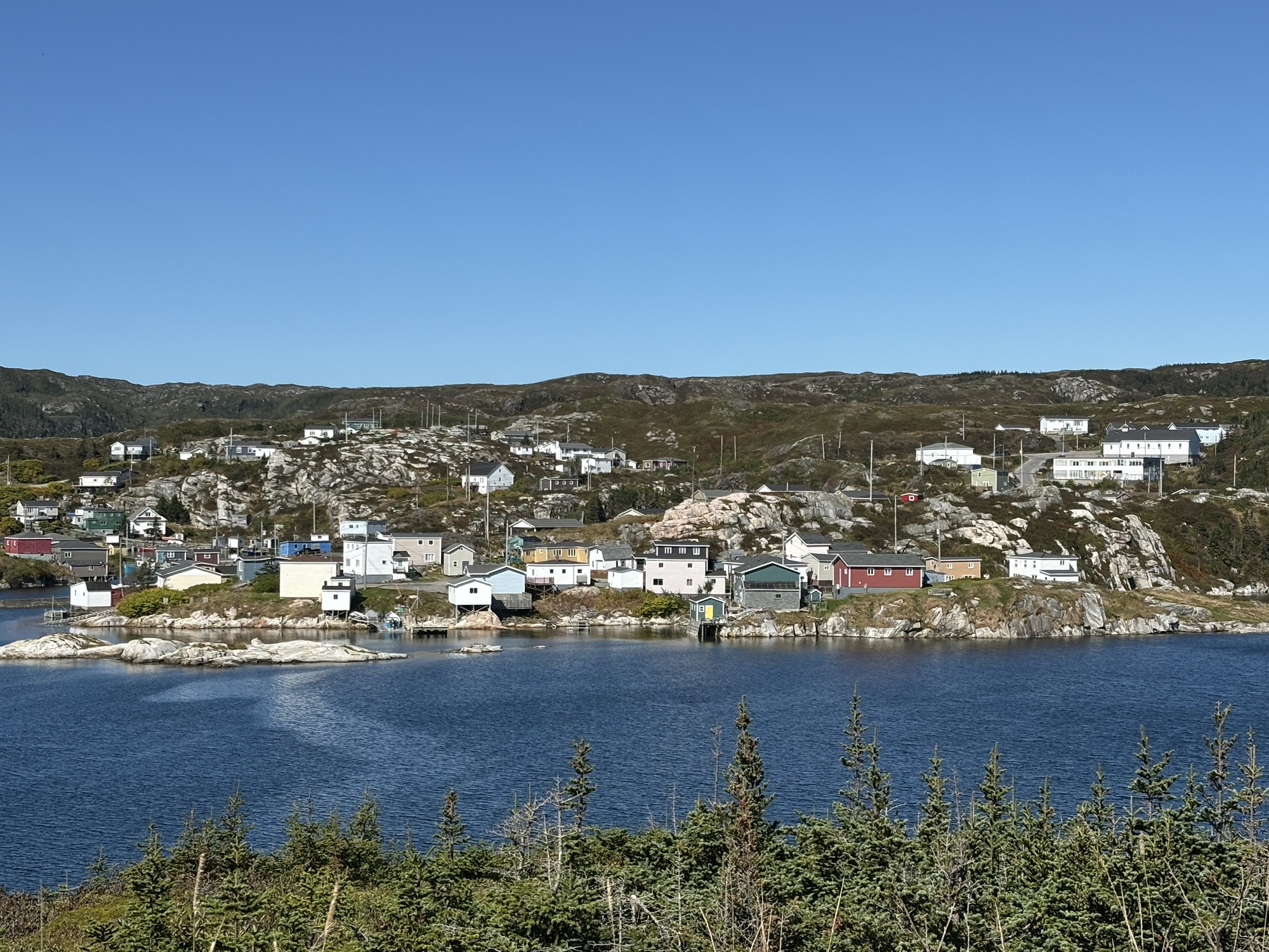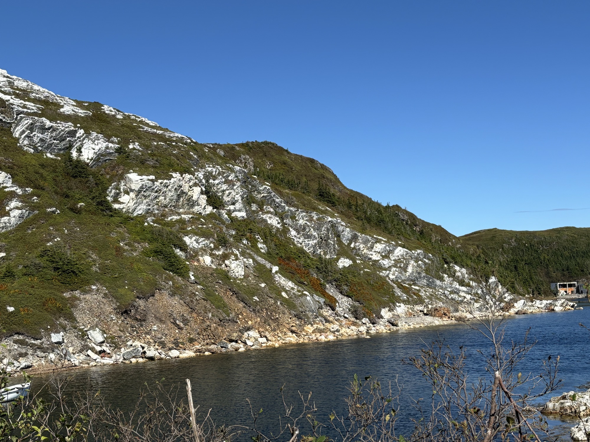 We decided to drive out along the southern cost on the Granite Coast Drive from the port area to Rose Blanche at the end of the road. About 60 miles round trip. Immediately, we could see why they called it the Granite Coast. The landscape and topography were almost like another planet with barren hills and huge boulders. But dispersed around, there were also beautiful mountain lakes and streams. And waterfalls. As we continued along the coast, things changed to be more forested. We stopped at several very small fishing villages along the road with a stop at Diamond Cove as our destination.