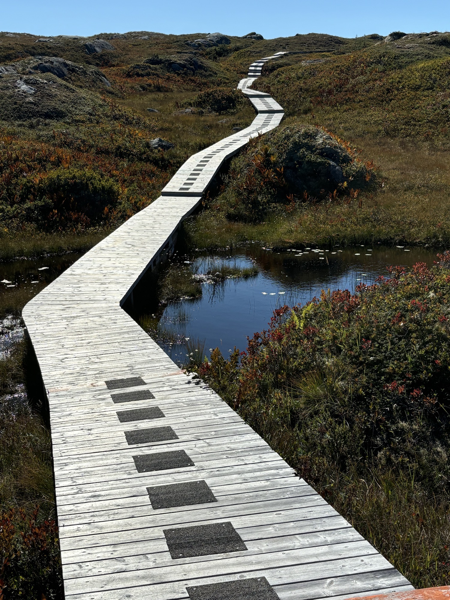 Second stop was a walk to Barachois Waterfalls. The walk was mostly down, and on a board walk, so it was easy. The area was another highland marsh similar to the Bog in Cape Breton with the same flora. We found out that the pitcher plant we first saw at the bog is the Provincial flower of Newfoundland. The falls were impressive but very high so you couldn’t really get close enough to really appreciate them. The walk back wasn’t too strenuous with the smooth boardwalk. Nice!