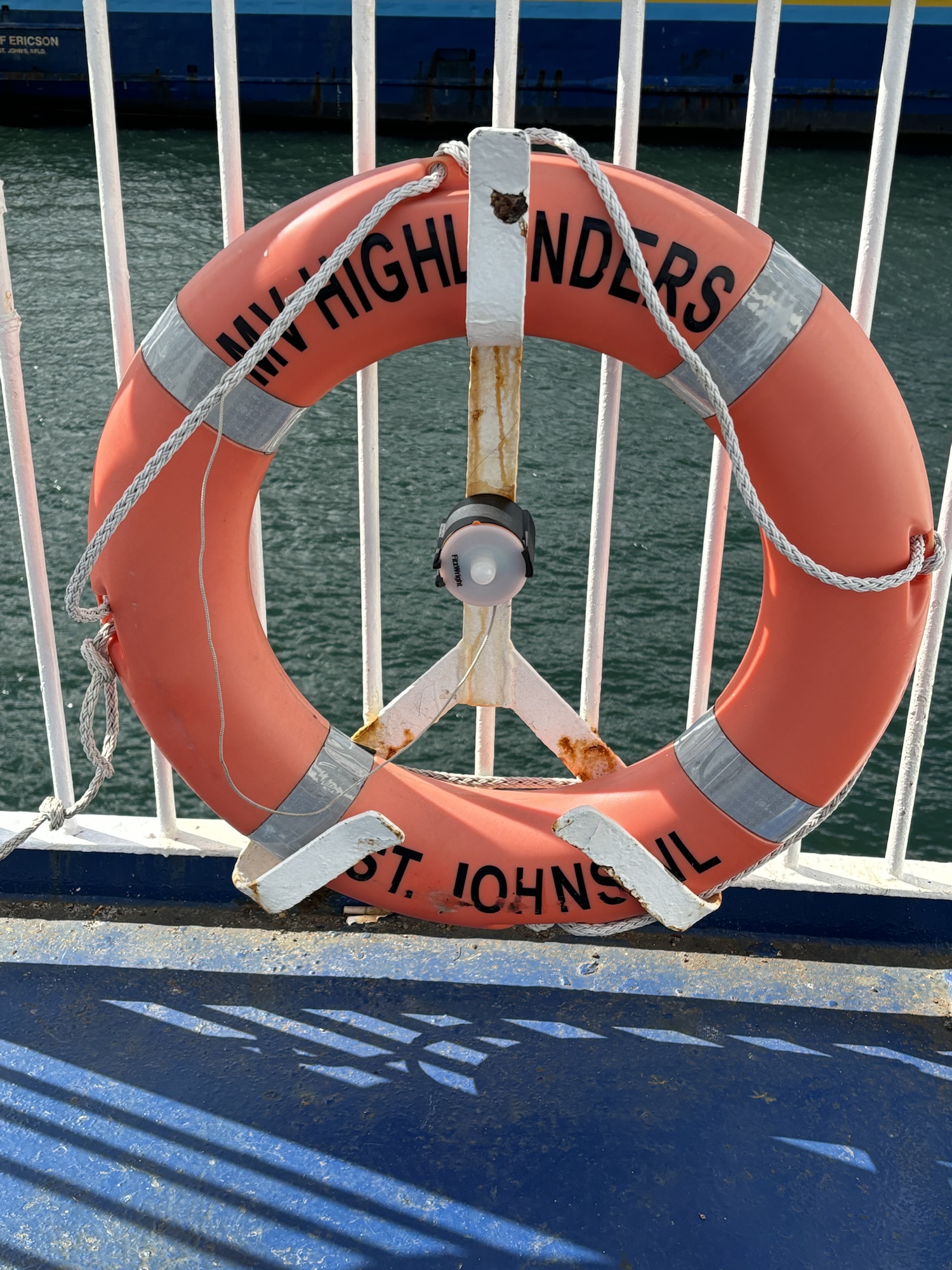 Our new friends were just behind us in line, and we finally began loading. They had reserved a cabin because one couple was traveling with a Chihuahua and didn’t want it in the kennel. So, we agreed to meet later in the main seating area. We got settled, took some photos, and we were off a just bit late. The crossing is about 110 miles from North Syndey, NS to Channel-Port aux Basques, NL and would take about 7 hours. (BTW- if you don’t know, Newfoundland and Labrador are one of the few places in the world where the clocks are 30 minutes off the normal time zones. Yes, there are others. Google it!) We sat and talked among ourselves. I worked on the last blog. And we relaxed. The weather for the crossing was perfect with light winds and small swells on the ocean.