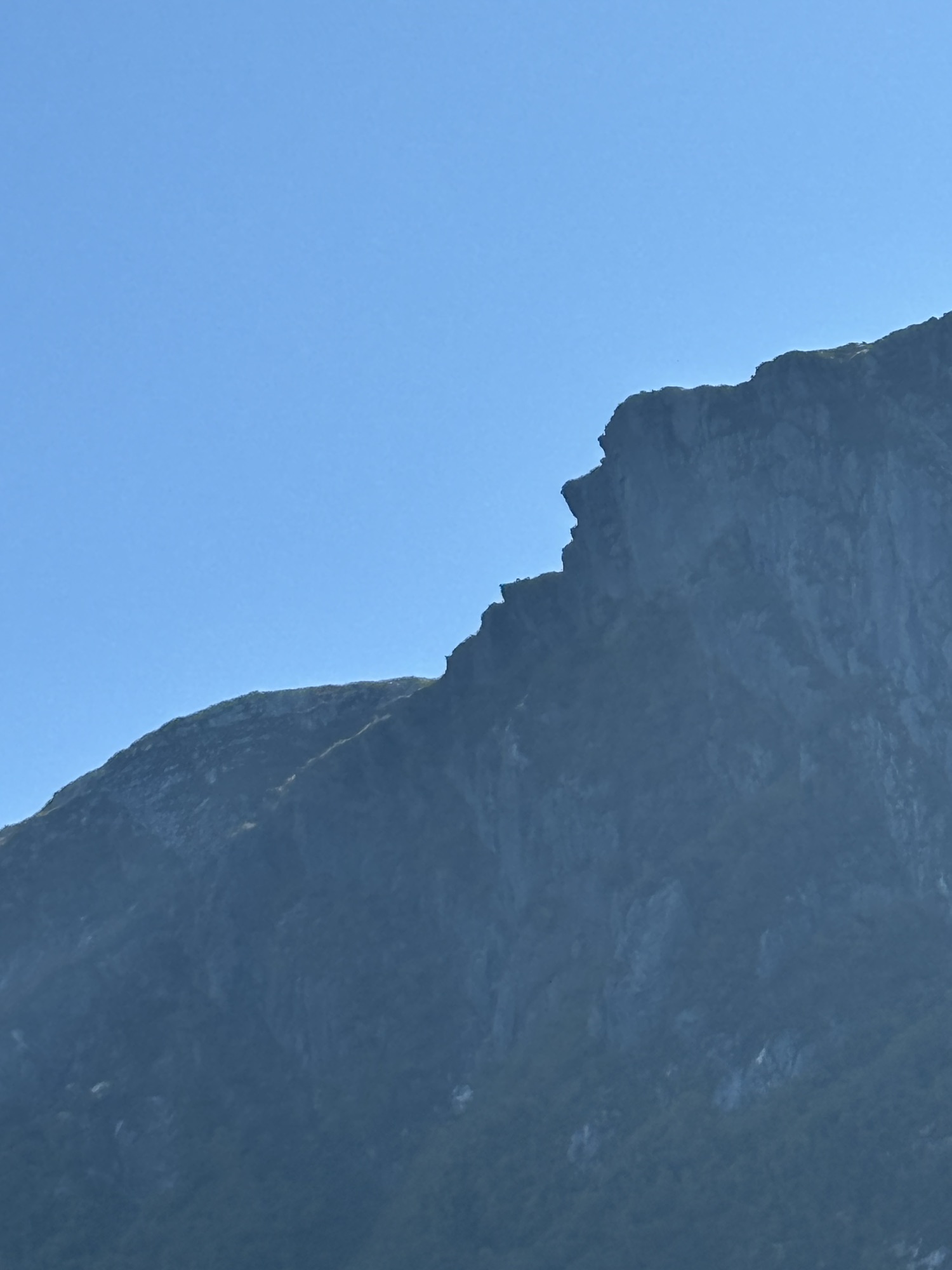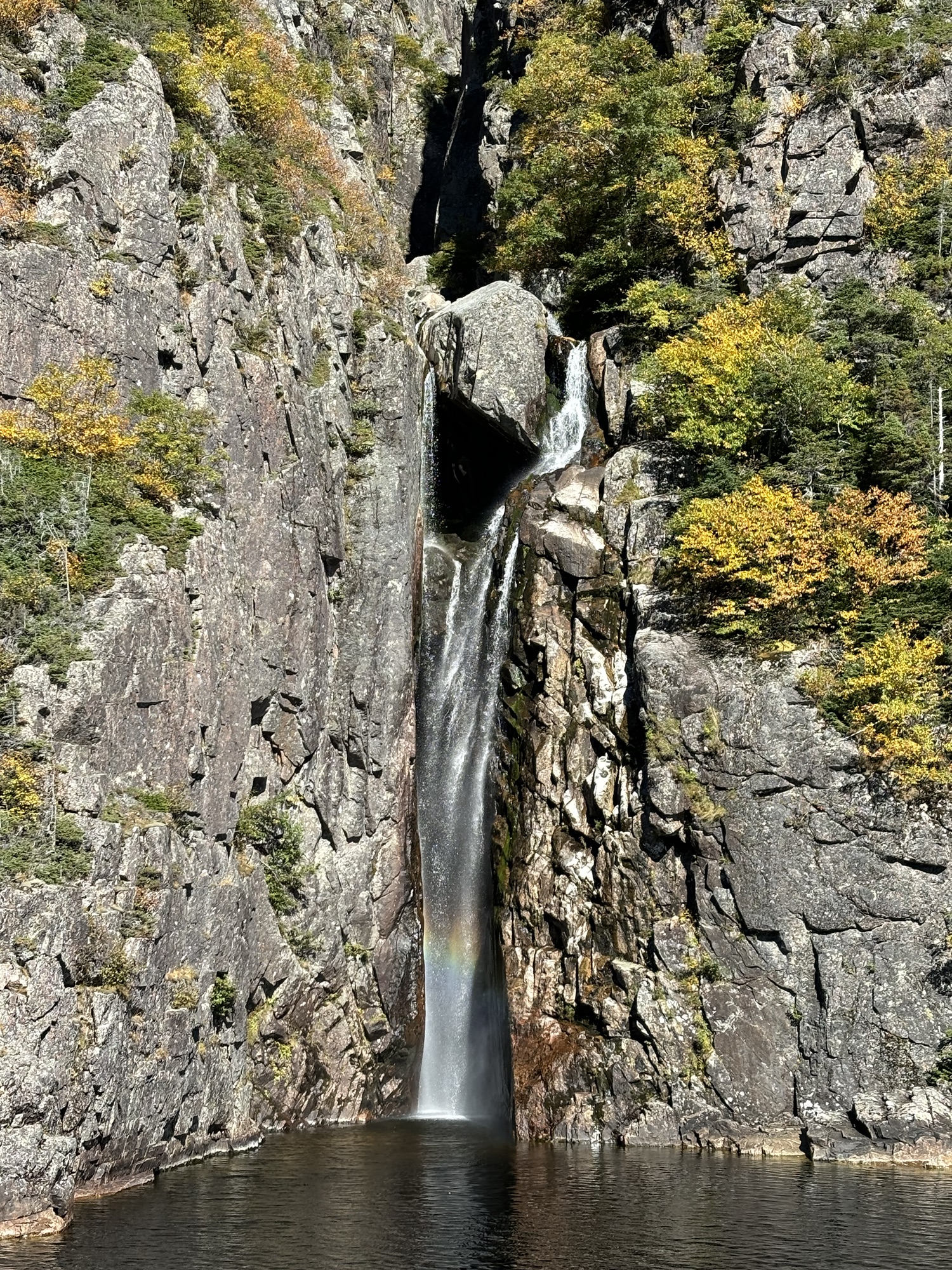 The boat was full, and we got a nice seat on the upper deck near the aft rail. Our guides and tour directors were named KJ and Jamie, and they took turns explaining things as we went along the and through the watery canyon. It had been formed by ancient glaciers and tectonic plate movements. The sheerness created many waterfalls, cliffs, rock sculptures, and very clear water. It is really hard to explain but the photos tell the story better. For example, find the face profile in one of the photos and find the rainbow in one of the others.