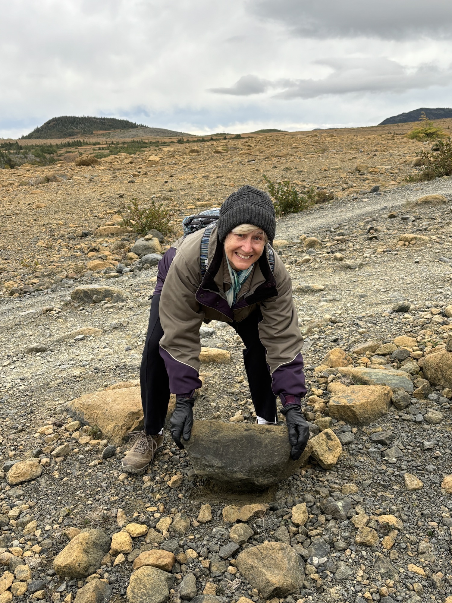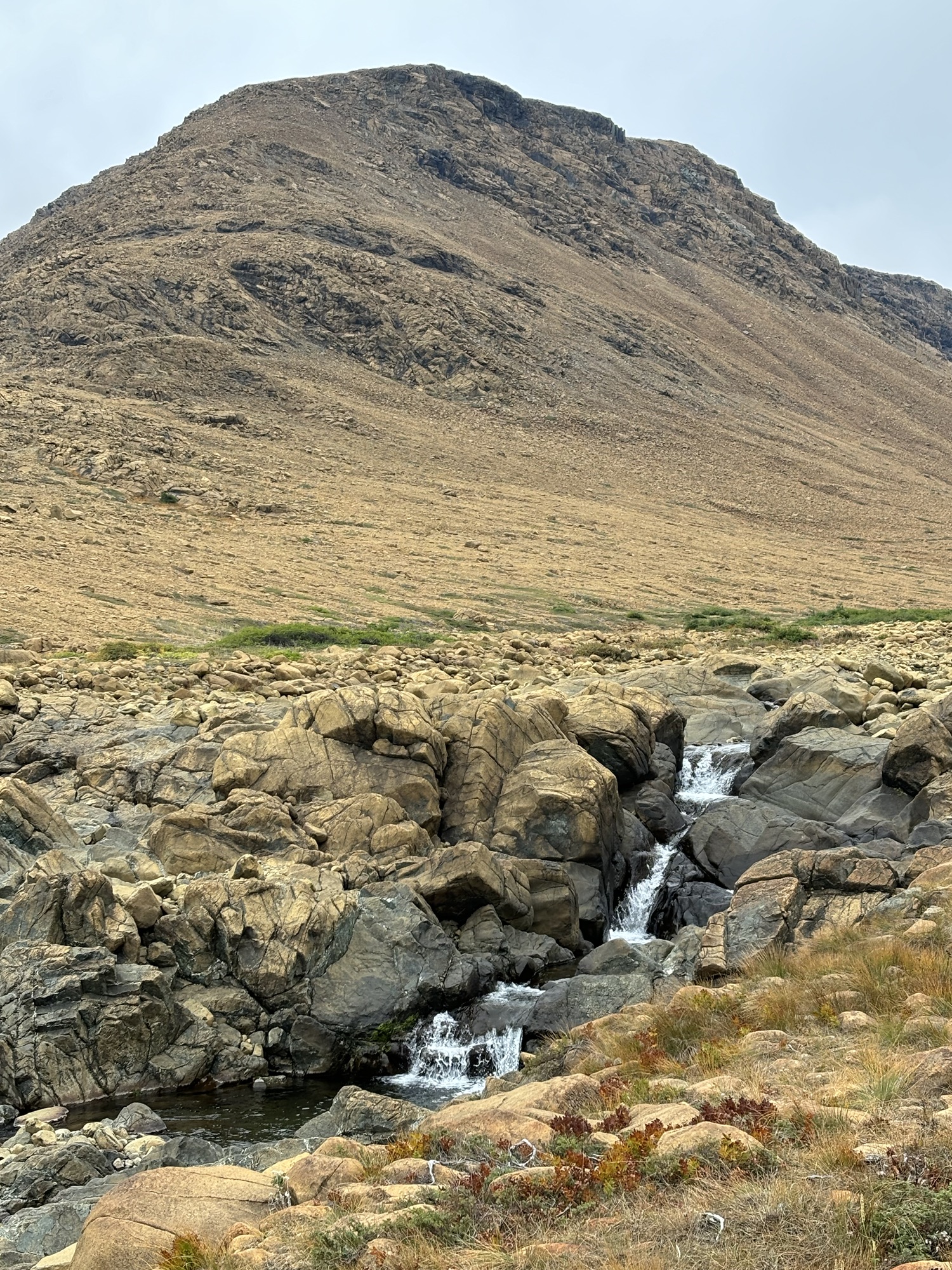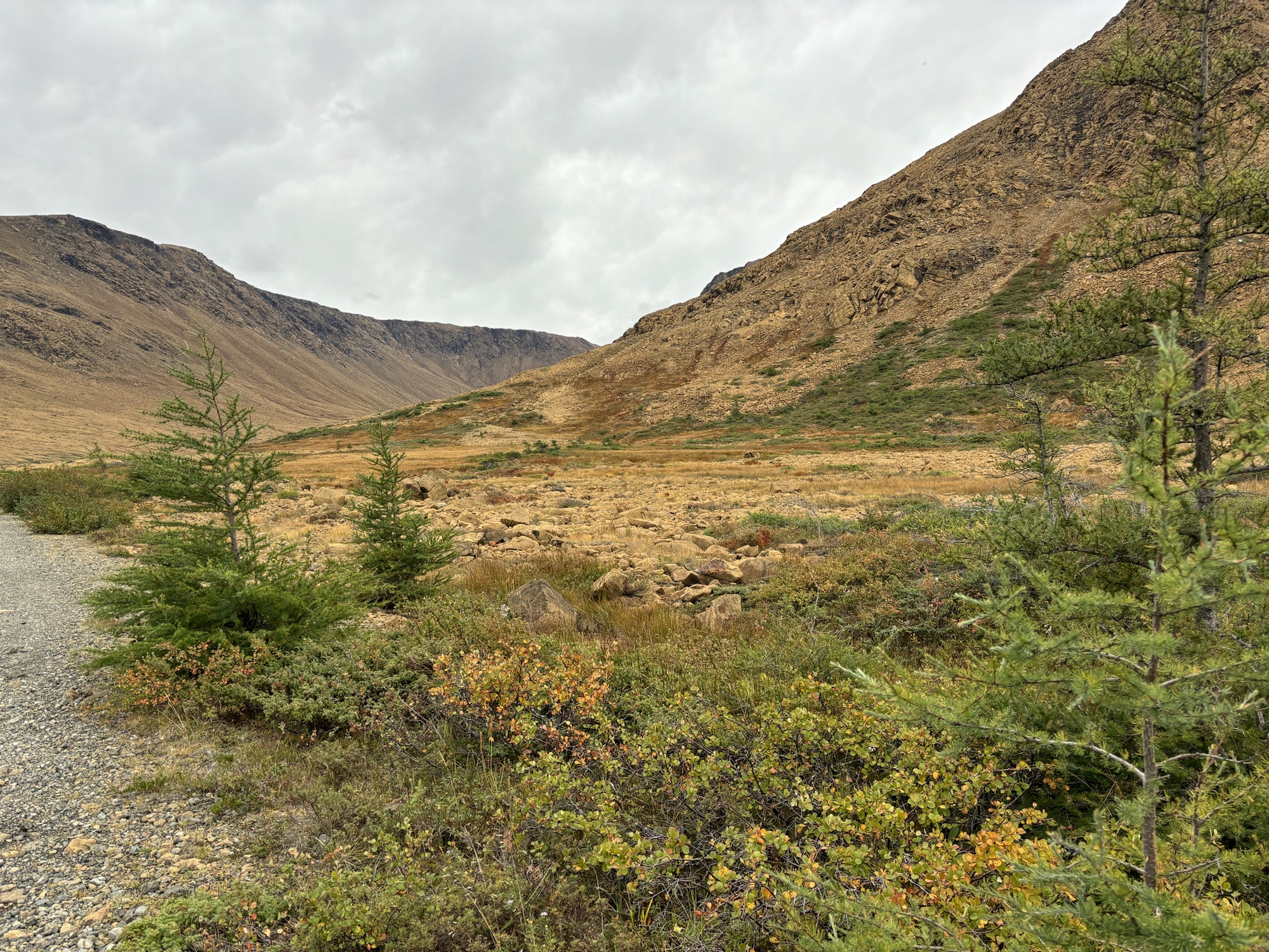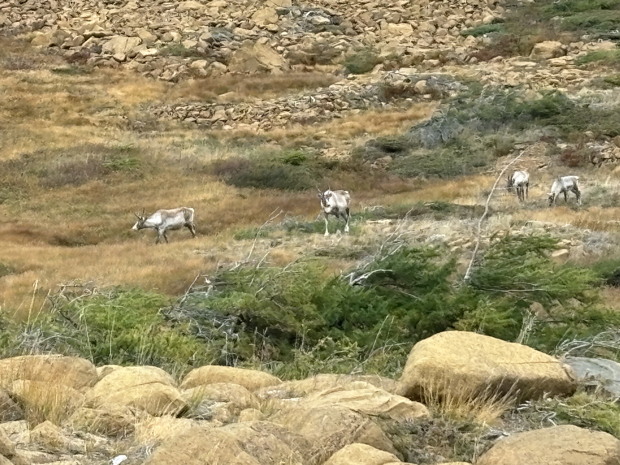We took the 2 mile walk up to a stream that had a look out and small cascade of water. We sat with some other people and had a snack lunch and rested. As we were leaving, I saw 4 Caribou come grazing over a small hill and walking their way toward the stream. Looked like possibly a large bull with a cow and two calves. They just moseyed to the stream then jumped and ran to the other side and continued grazing. A really great sight. We have added this as a possible stop again next year to see the stream again as the snow is melting off the mountain. Don’t think it will be quite as calm.