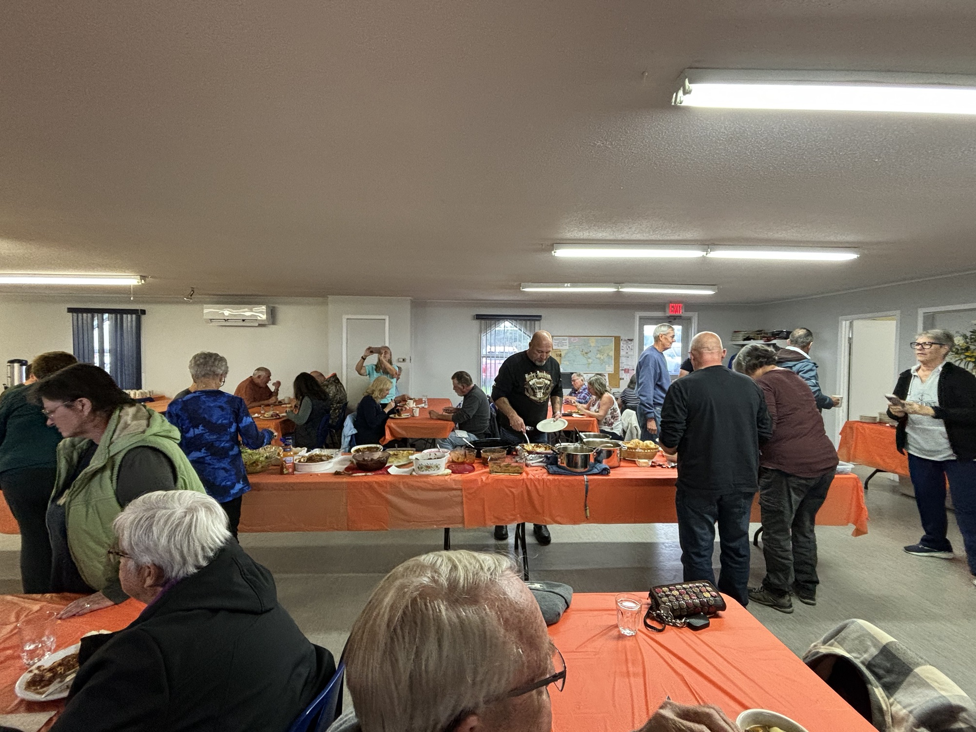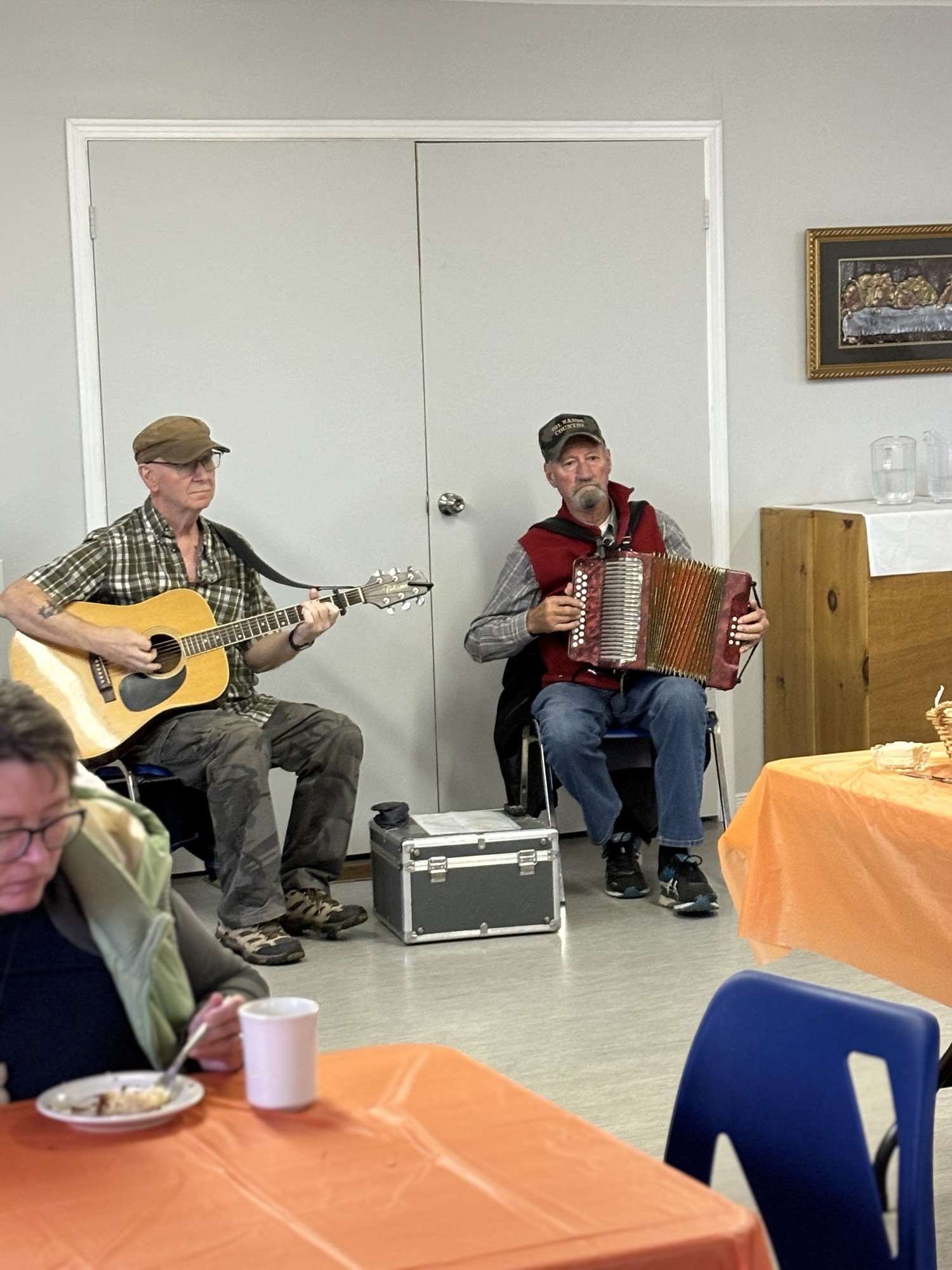 We stopped at another lighthouse and another waterfall on the way out of the park and then met up with our friends to attend the Cow Head Festival Potluck Dinner at the church. The home cooked dishes were all made with moose. There was moose stew, moose brisket, moose lasagna, moose meatballs. Get the picture. And they were all good. And to finish it off, great home cooked pies, cakes and cookies! (Gail had lemon meringue which she doesn’t get often since I am a founding member of the “Save the Fruit Foundation” – especially citrus!)