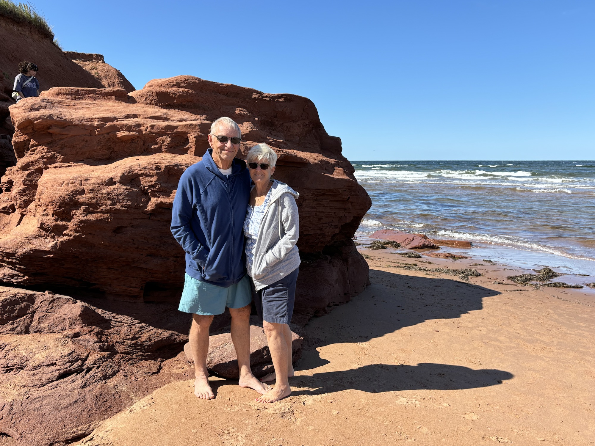 Back to the red sands. Those of you that know me know that I am color blind, so the “red” sands did not impress me that much. But Gail assured me that they were definitely red! The sand on the beaches came from the sandstone cliffs that erode onto the shore. The cliffs were more impressive to me, and we would see more of both in the coming days.