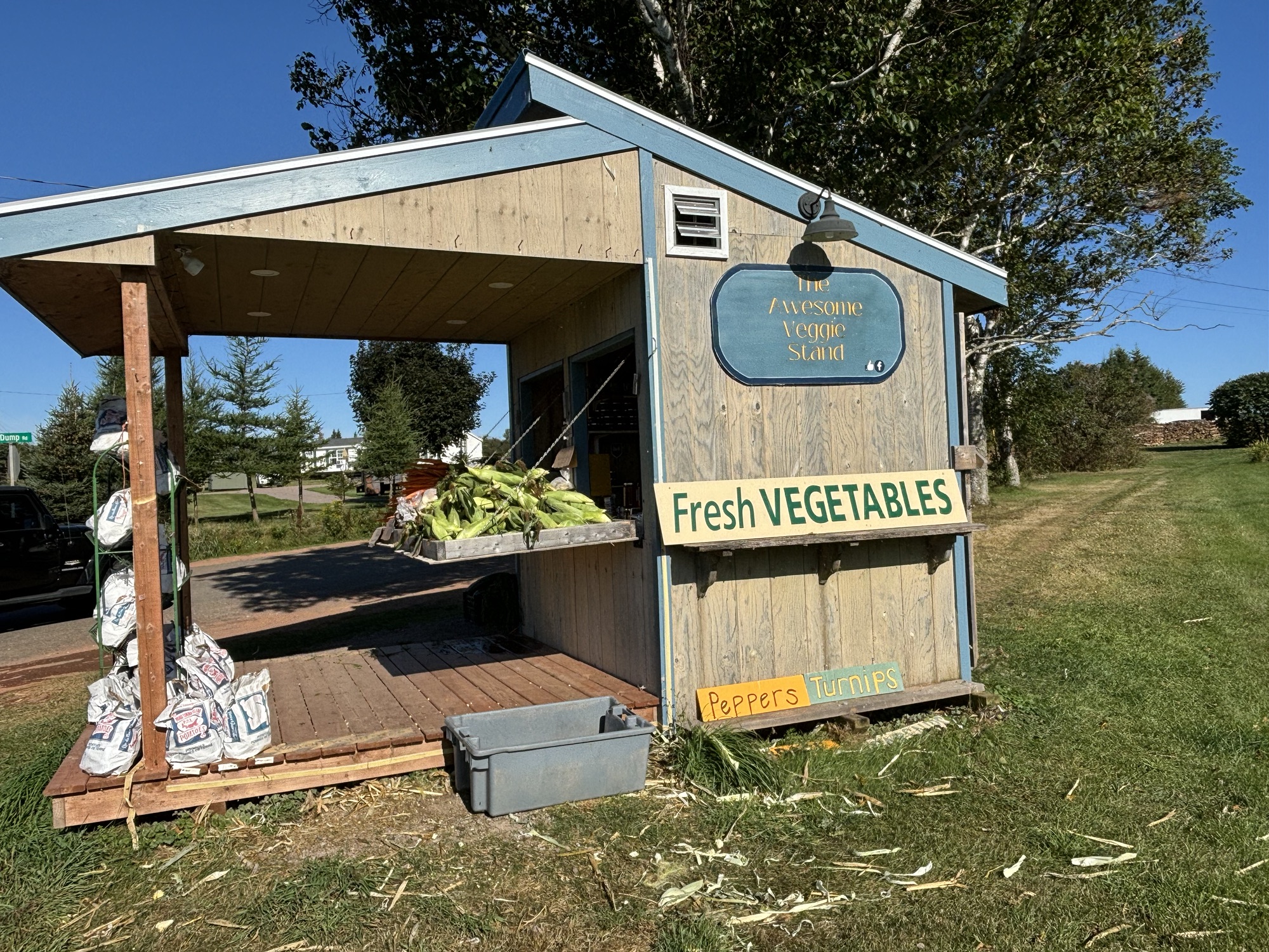 As we drove to the park, Gail noticed a small farm stand along the road call the Awesome Veggie Stand. She couldn’t pass it up. It was an honor system stand with everything out on display. It was pretty awesome. She picked up some fresh corn on the cob and plums (as we had just been to the store). But a fun place and typical of the island.