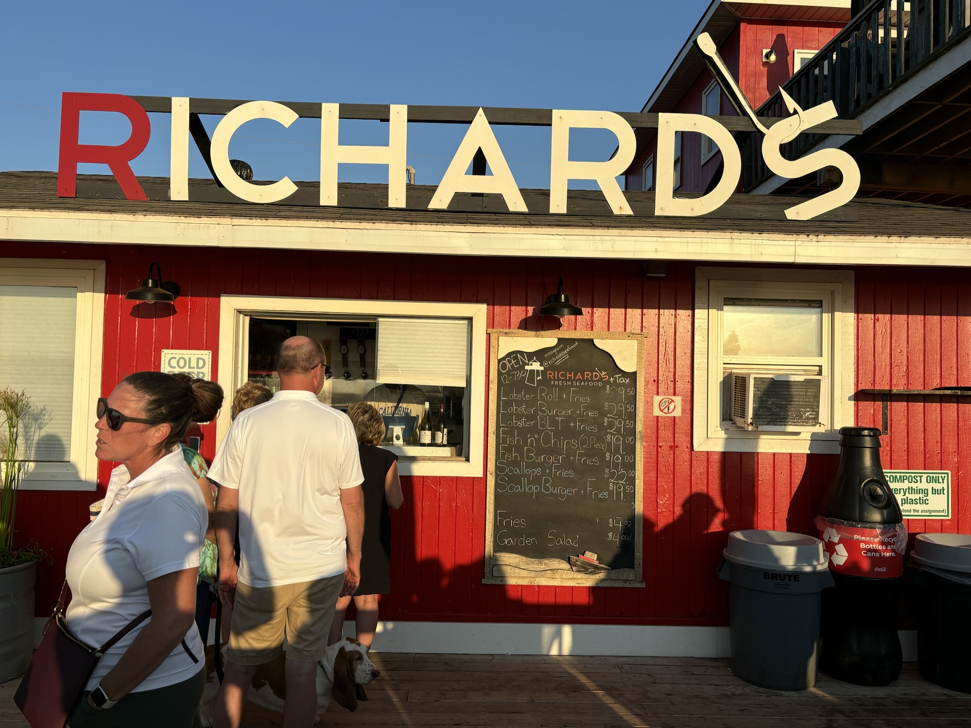 We noticed a small beach eatery called Richards that was crowded with afternoon diners but did not take any special note. We later were given several “must go” recommendations from people we met during the week. So, it went on our list!