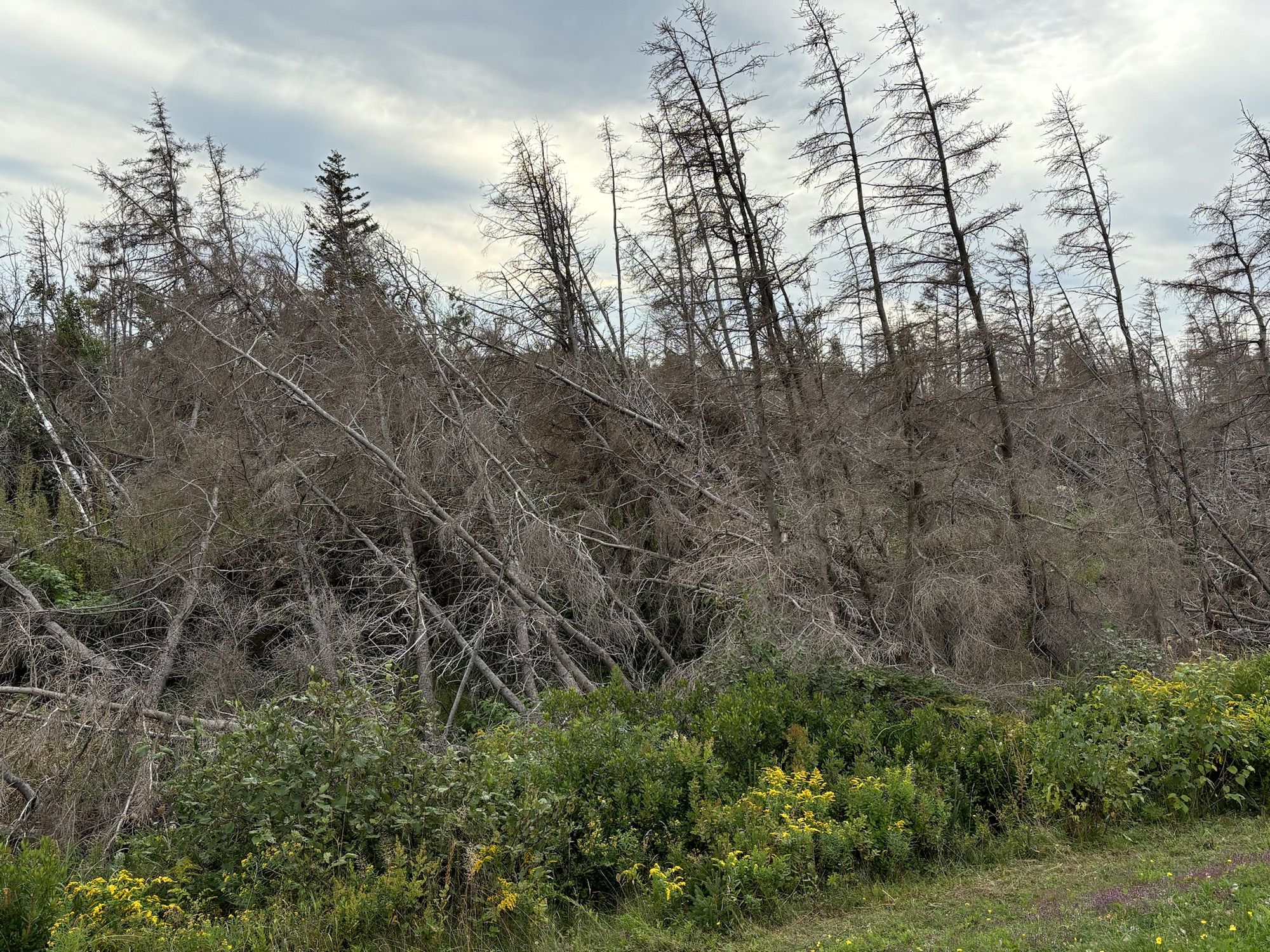 A quick observation here to point out the damage caused by Hurricane Fiona in 2022 as one of the strongest storms ever to hit maritime Canada. The evidence of the storm was still visible all around with downed trees across the island.